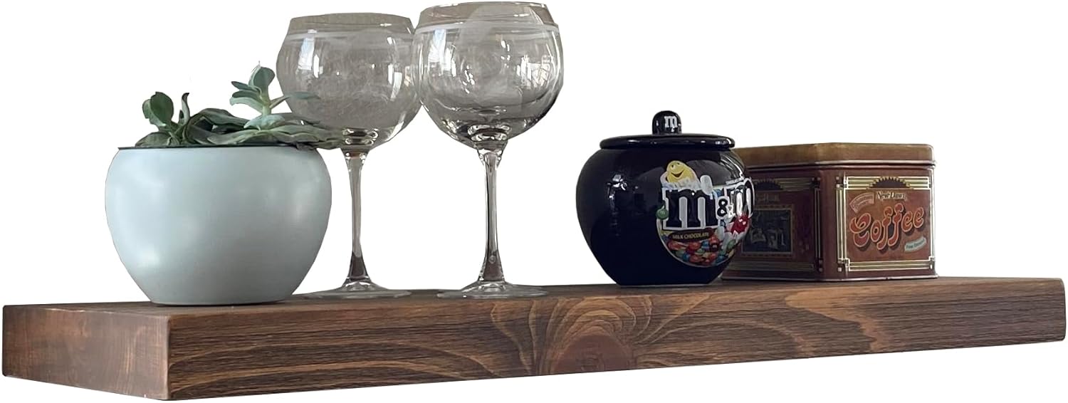 - Elevate Your Space with Rustic Charm: Transform your living room or any space with our large floating shelves for wall. These 36 inch floating shelf beauties, crafted from natural wood, add a touch of rustic warmth and provide ample display space for your cherished items.