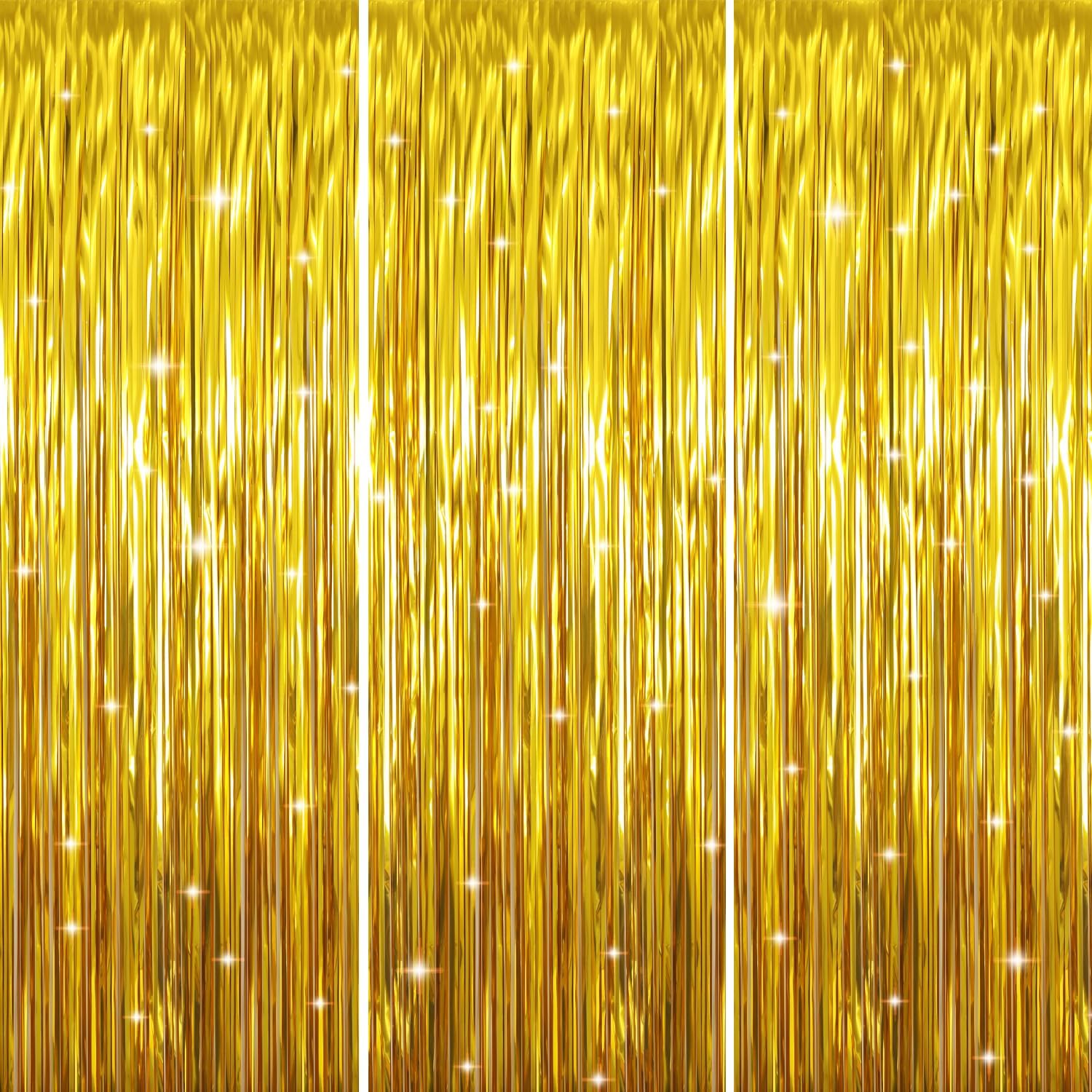 - Package Includes:3 pack gold foil fringe curtains,3.2 ft x9.8 ft each,suitable for hanging on a door or coverage a wall fully
