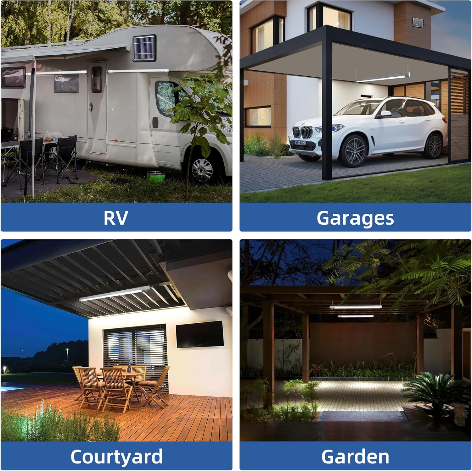 - Energy Efficient:Powered by solar energy, no need for grid electricity. This portable solar power shop light illuminates your carport shed camper or wherever you need it, give bright lightting in locations that don't have direct access to electrical power