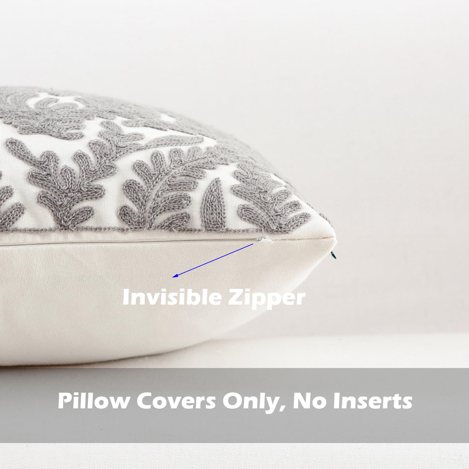 HWY 50 Grey Gray Decorative Throw Pillow Covers 18x18 Inch (1 Piece), Embroidered Cotton Farmhouse Cushion Cover Pillow Case for Sofa Couch Living Room Bed Bedroon, Floral Branches