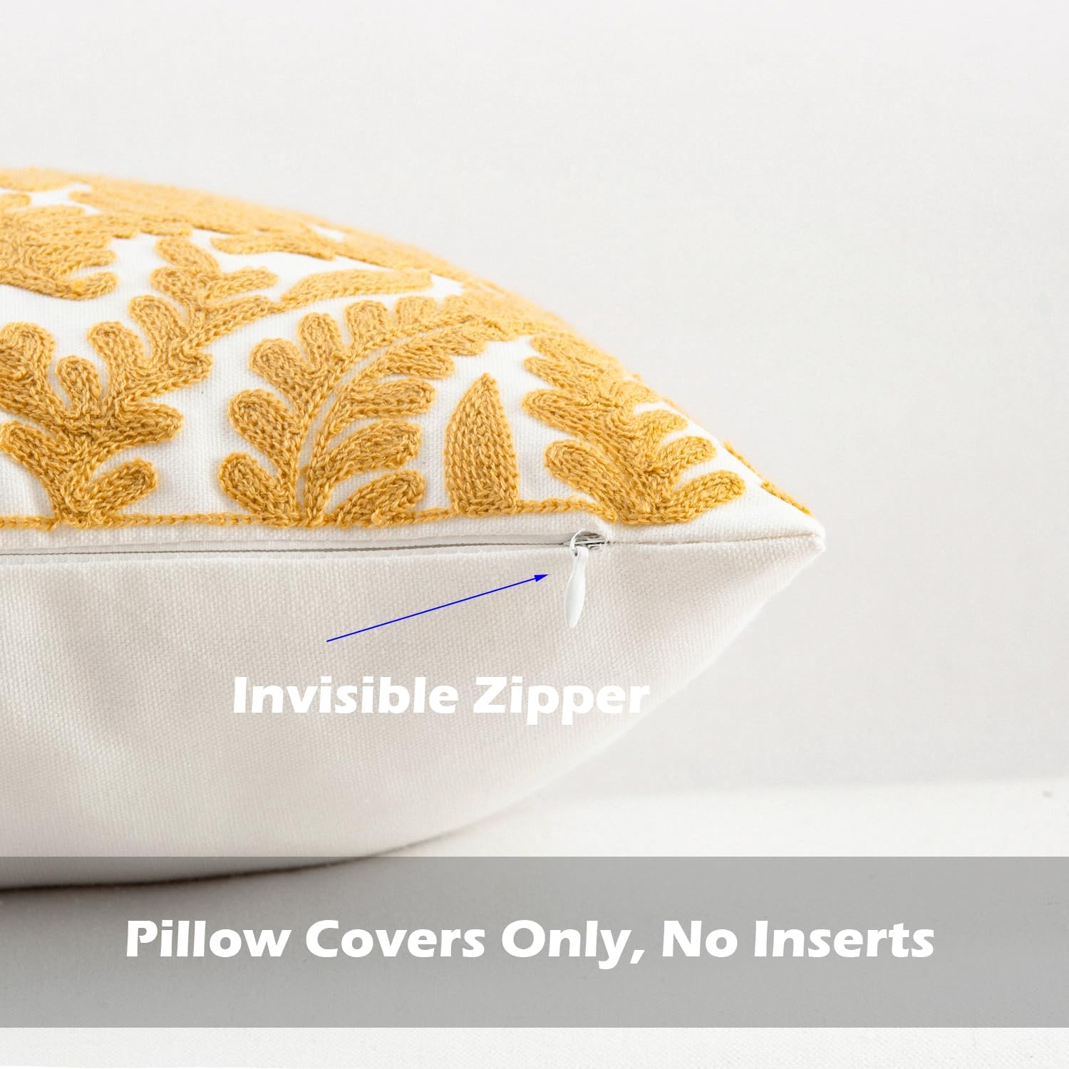 HWY 50 Mustard Yellow Decorative Throw Pillow Covers 18x18 Inch (1 Piece), Embroidered Cotton Farmhouse Cushion Cover Pillow Case for Sofa Couch Living Room Bed Bedroon, Floral Branches