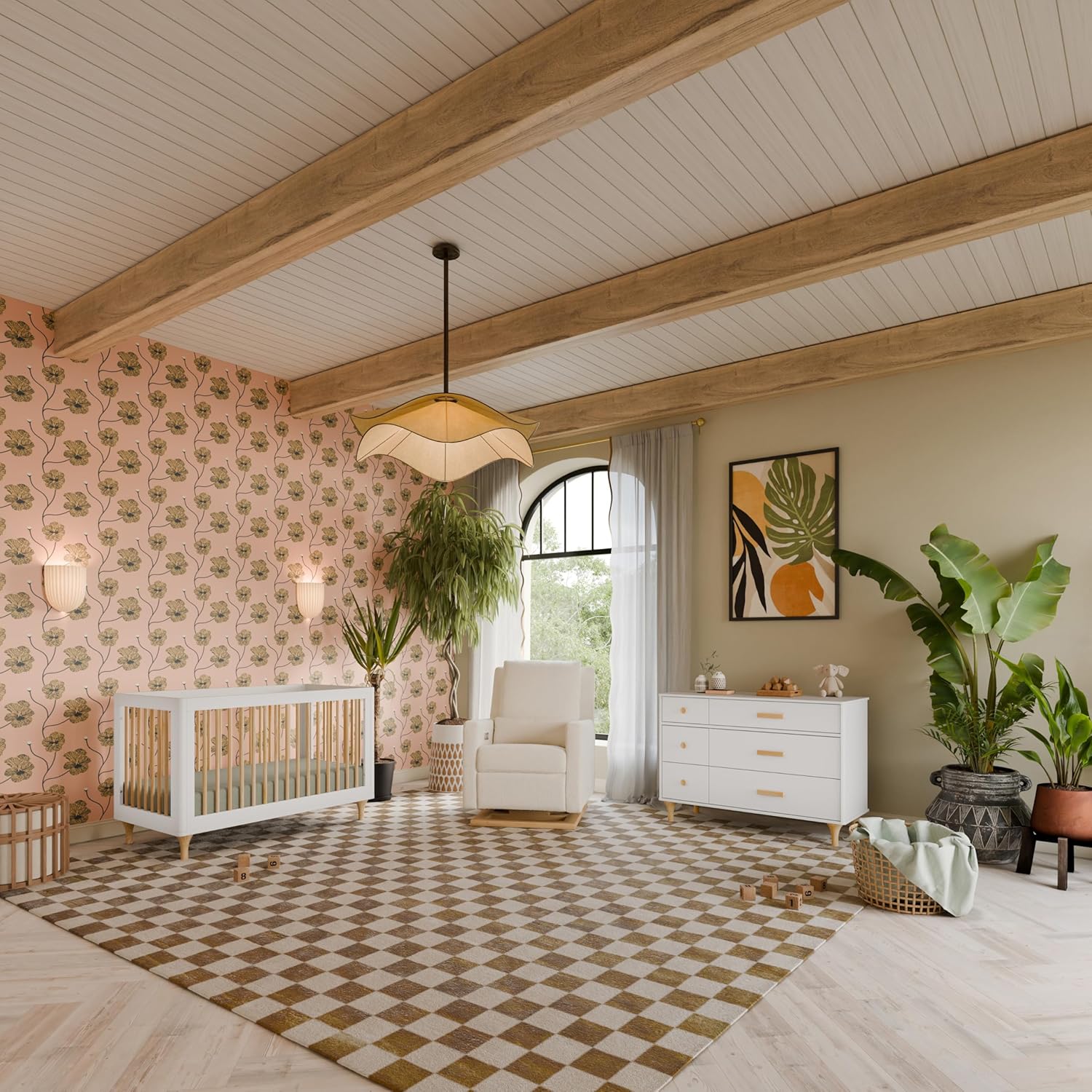 Babyletto Lolly 6-Drawer Assembled Double Dresser in White and Natural, Greenguard Gold Certified