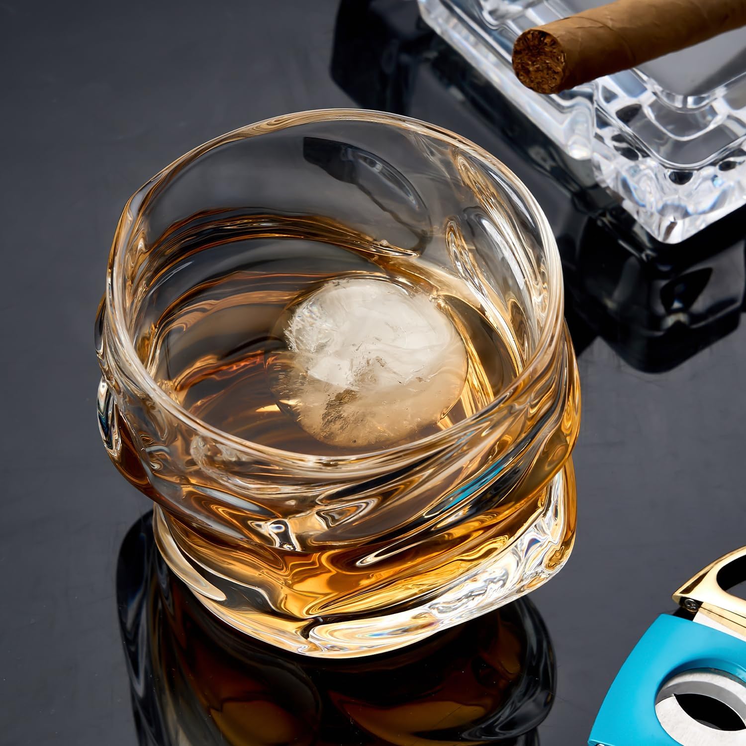 12 oz Hand Blown Crystal Whiskey Glasses Set of 4, Unique Cognac Glass, Heavy Thick Bottom Bar Glass for Scotch Bourbon Rum Gin Water Cocktail,Gifts Men Gifts Ideas