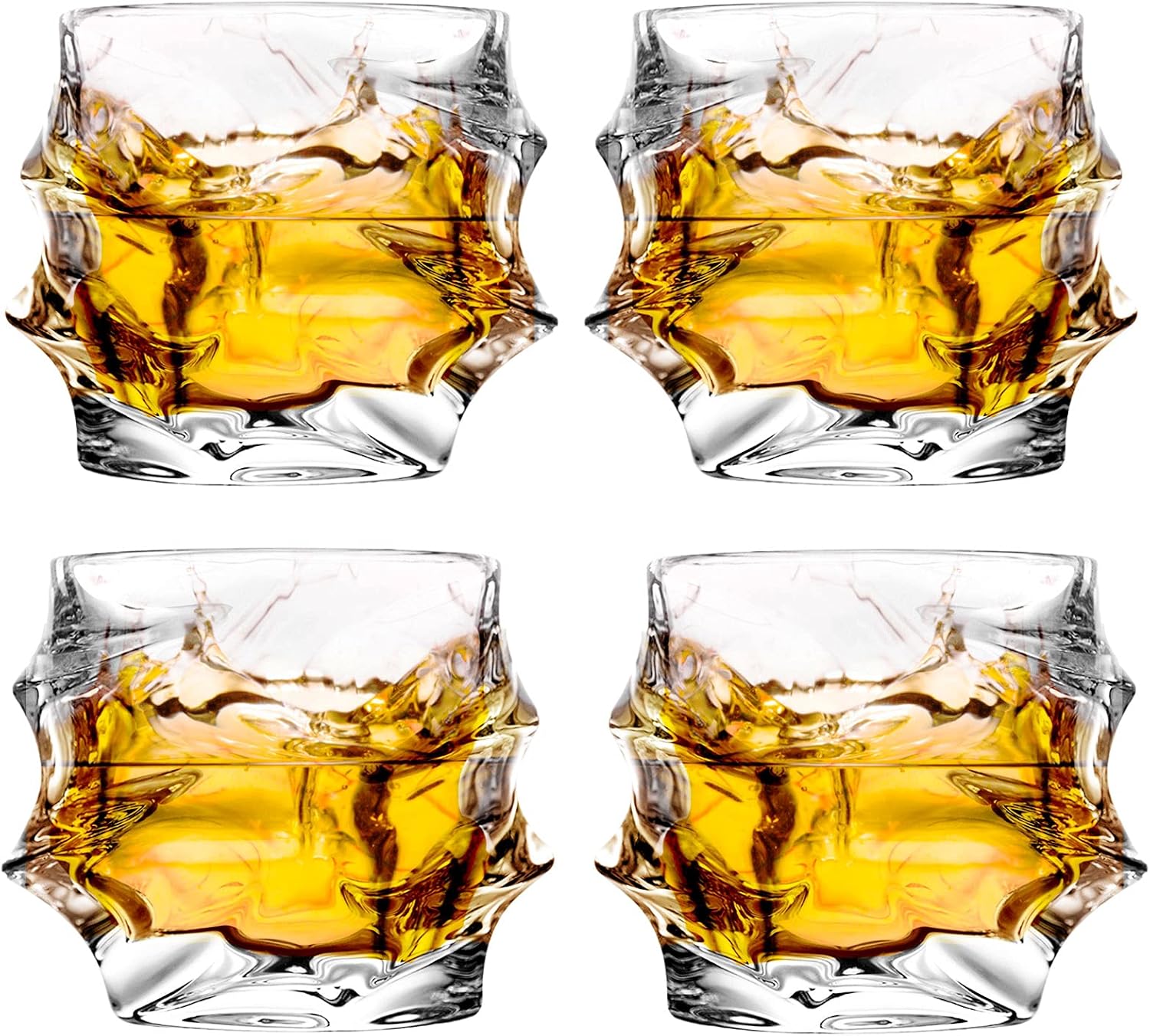 - 【Gift for Whiskey Lovers】Unique whiskey glasses set of 4, the best birthday gift. These lowball glasses also make a perfect gift for anyone who enjoys drinking whiskey, scotch, brandy, vodka, old fashioneds, gin and tonics, beer or wine. These rock glasses can make great gifts for weddings, anniversaries, bachelorette parties, Mother's Day, Father's Day, engagements, New Year's or Christmas.