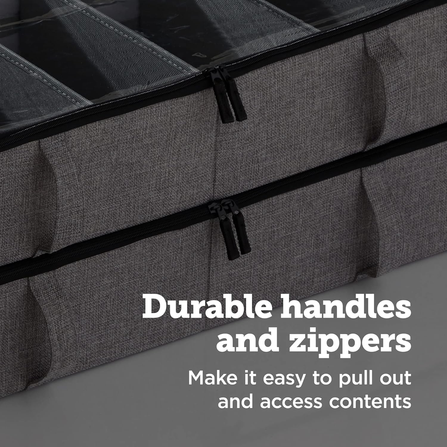 - HIGH CAPACITY: Measures 30'' x 24.5'' x 5.3'' and holds up to 12 pairs of shoes each. The adjustable dividers make this under-bed storage work as a shoe organizer, clothes organizer, blanket organizer, etc.