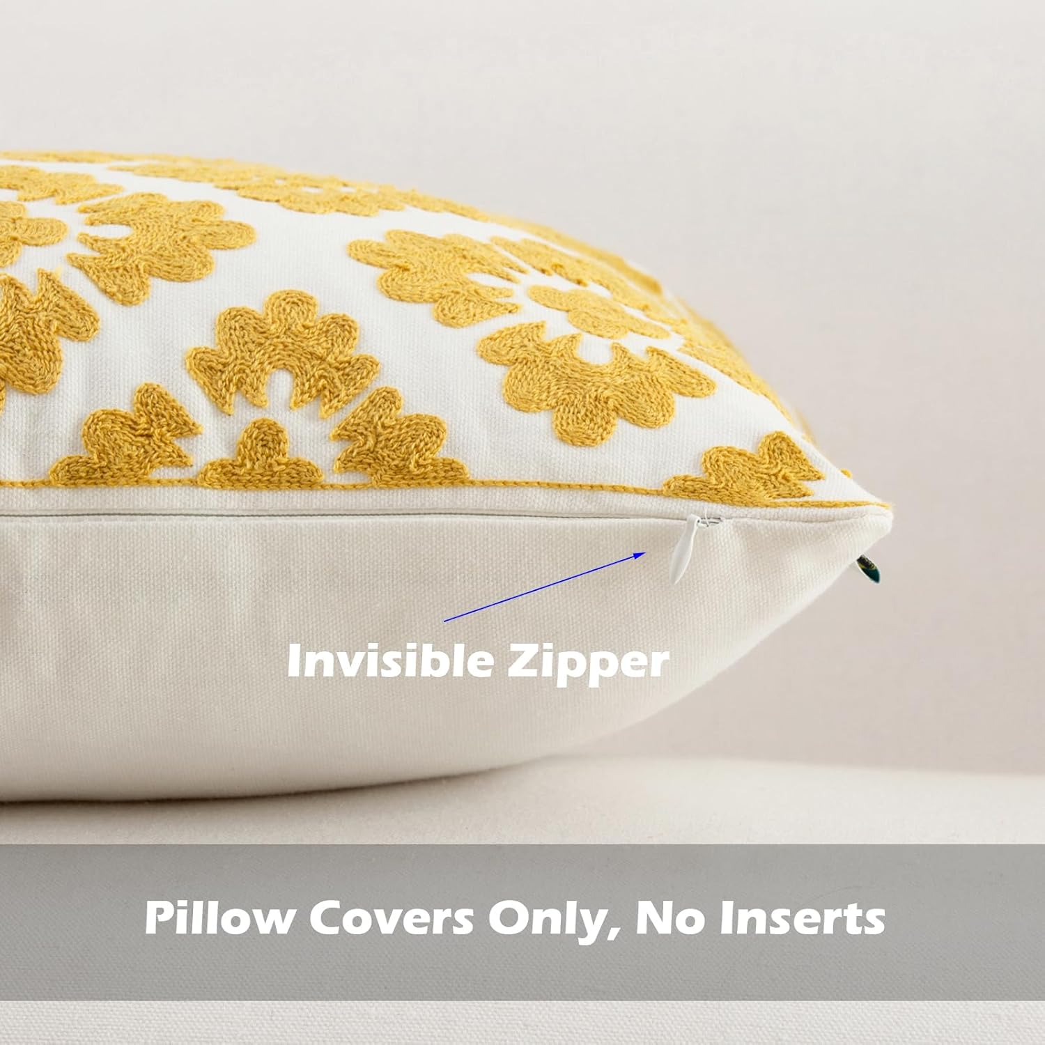 - Size & Material: This 18 x 18 inch (18 by 18) square throw pillow cover is made of 100% thick cotton canvas for durability. The crisp white fabric is soft yet sturdy, featuring beautiful single-sided embroidery for an elegant touch