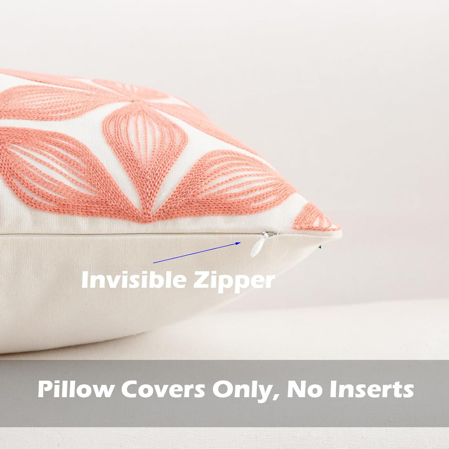 HWY 50 Coral Pink Decorative Throw Pillow Covers 18x18 Inch (1 Piece), Embroidered Cotton Farmhouse Cushion Cover Pillow Case for Sofa Couch Living Room Bed, Fashion Geometric