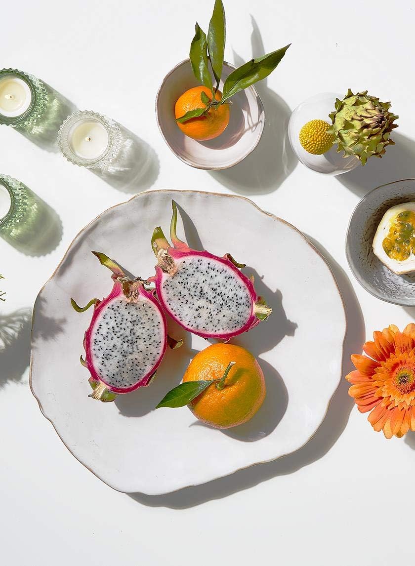 Serene Spaces Living Set of 2 Large Free-Form Edge Glazed Ceramic Plate- Dinnerware for Vintage Weddings, Events, Measures 12" Diameter and 1.5" Tall