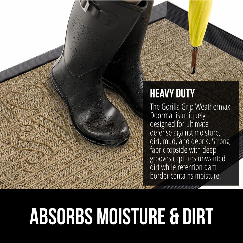 - THE ORIGINAL WEATHERMAX ALL SEASON DOORMAT: Gorilla Grip's Original WeatherMax doormat is built tough with a heavy duty, yet soft and flexible construction; deep grooves, beveled rubber border and retention dam help capture dirt, debris and moisture