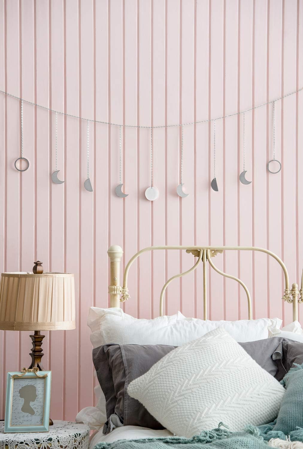 - Materials: Moon is made from metal and Iron chain with silver finish. Come with hooks and expansion tubes, easy to install and hang onto the wall