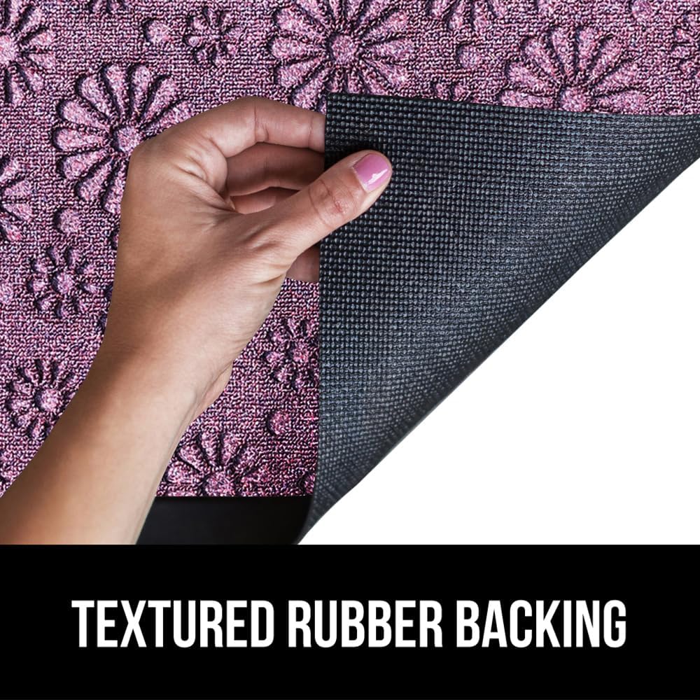 GORILLA GRIP 100% Waterproof All-Season WeatherMax Doormat, Durable Natural Rubber, Stain and Fade Resistant, Low Profile, Indoor Outdoor Door Mats, Easy Clean Entry Mat, 17x29, Purple Confetti Daisy