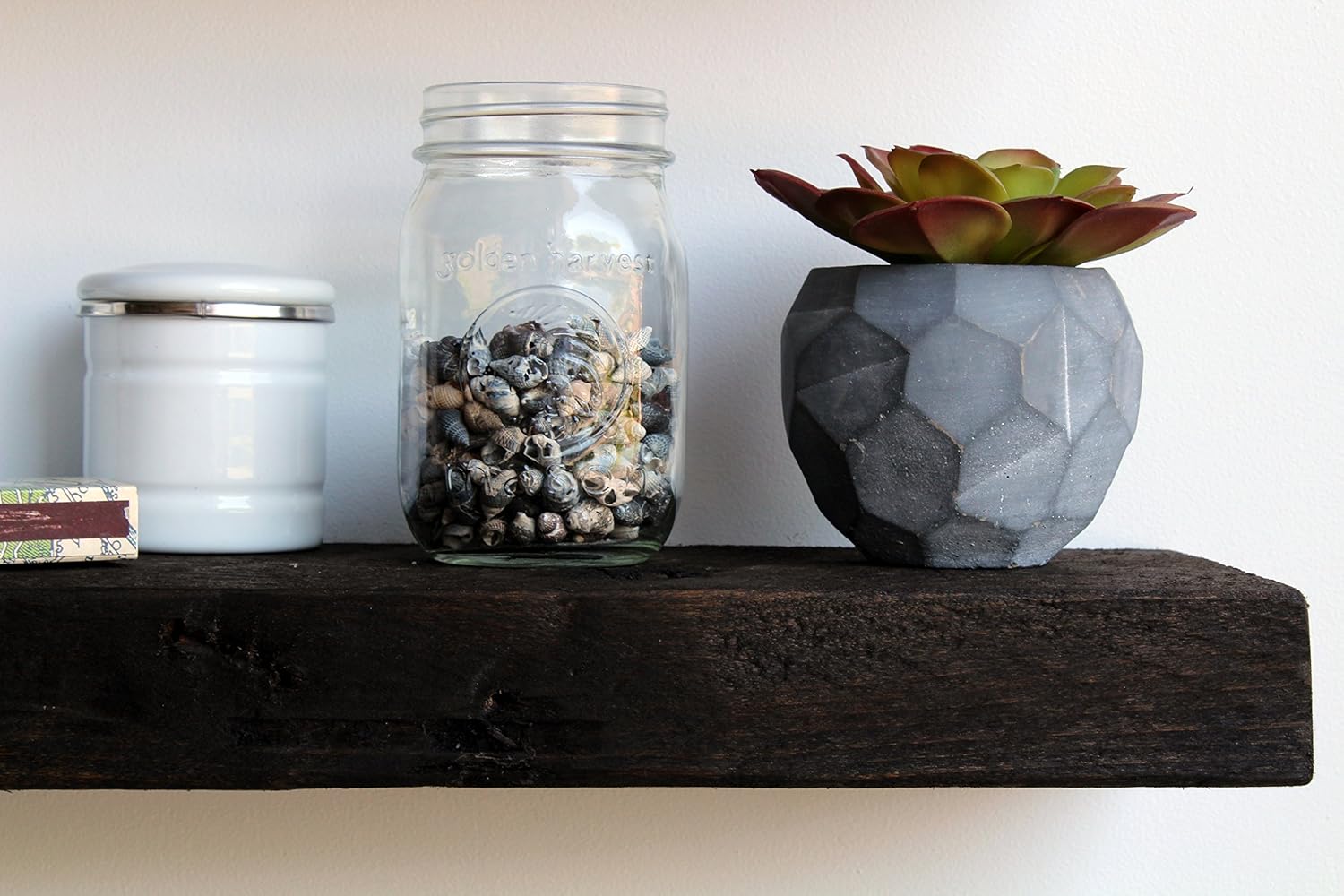 - MINIMALIST DESIGN AND RUSTIC ELEGANCE: Minimalist and rustic design come together in these rustic floating shelves. Built from reclaimed barn planks, they carry the nuances of rural living into your space. Our reclaimed wood shelf options include Natural wood floating shelves with no finish. We also offer a Coffee Bean stain for a darker look, or a White Wash finish that makes a beautiful white floating shelf.