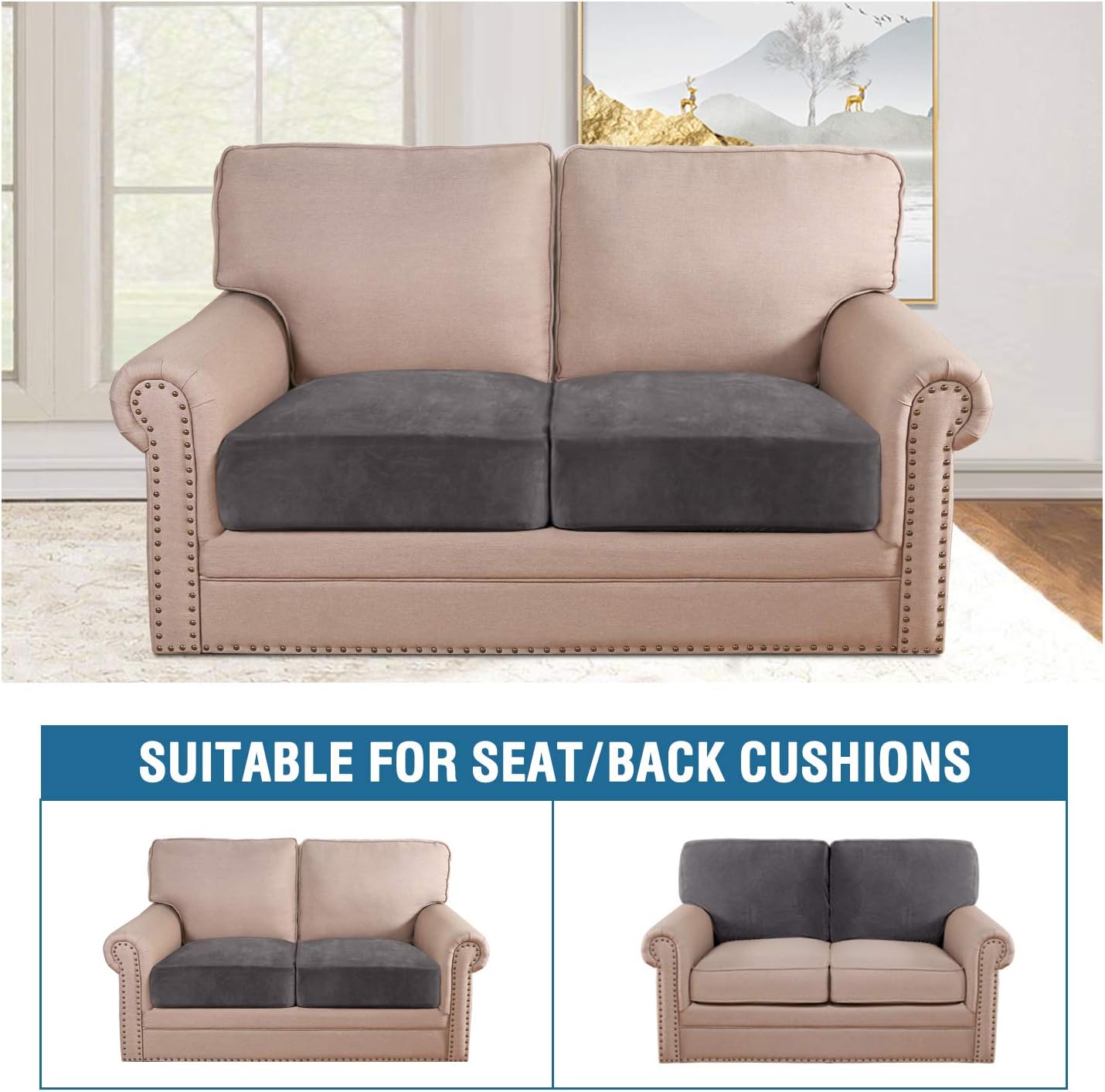 H.VERSAILTEX Velvet Stretch Couch Cushion Cover Plush Cushion Slipcover for Chair Loveseat Sofa Cushion Furniture Protector Seat Cushion Sofa Cover (2 Piece Medium Sofa Cushion Covers, Grey)