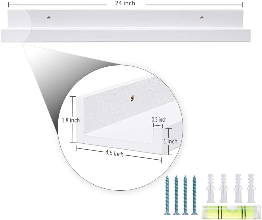 - Wall Mounted Picture Shelf: 24"in x 4.5in" x 1.8in"(LxWxH)Set of 2 wooden floating shelves.