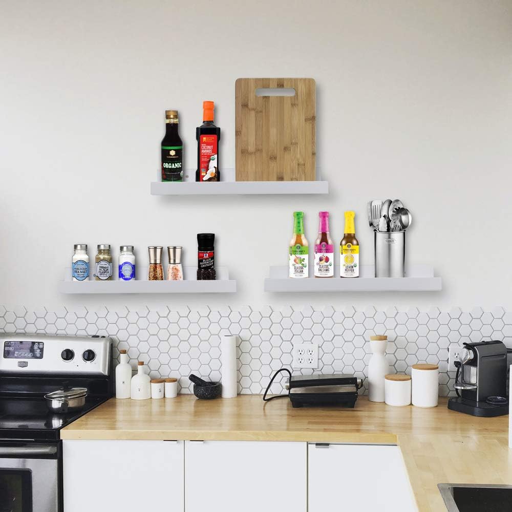- Versatile and Multi-Scene: AZSKY floating shelves are designed to be functional. Perfect for displaying your photos, artwork, plants, trophies, these wall ledge shelves add life and a personal touch to your interior. Our floating picture shelf is perfect for any interior space, such as your kitchen, living room, bathroom, bedroom or even office.