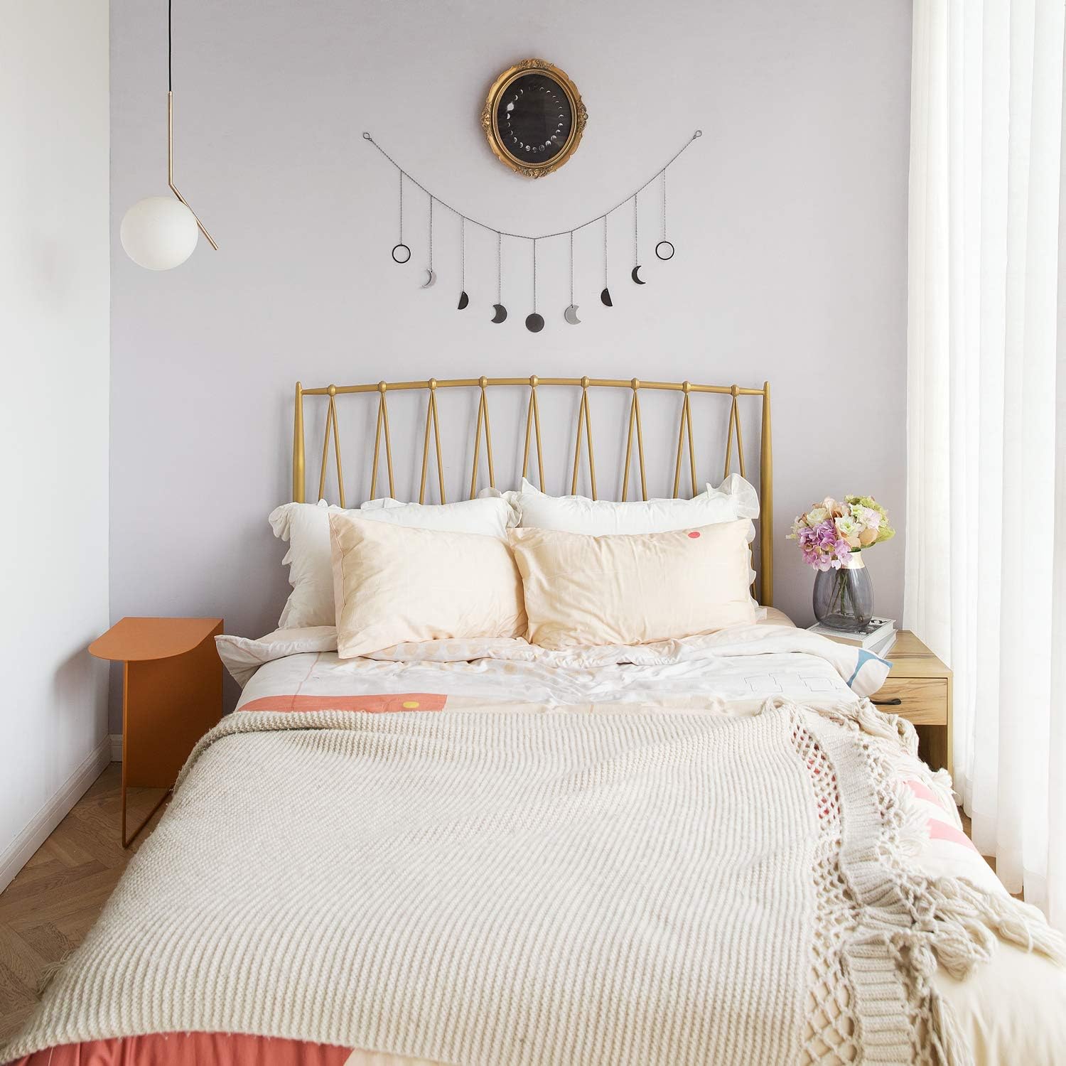 - Materials: Moon is made from metal and Iron chain with black finish. Come with hooks and expansion tubes, easy to install and hang onto the wall