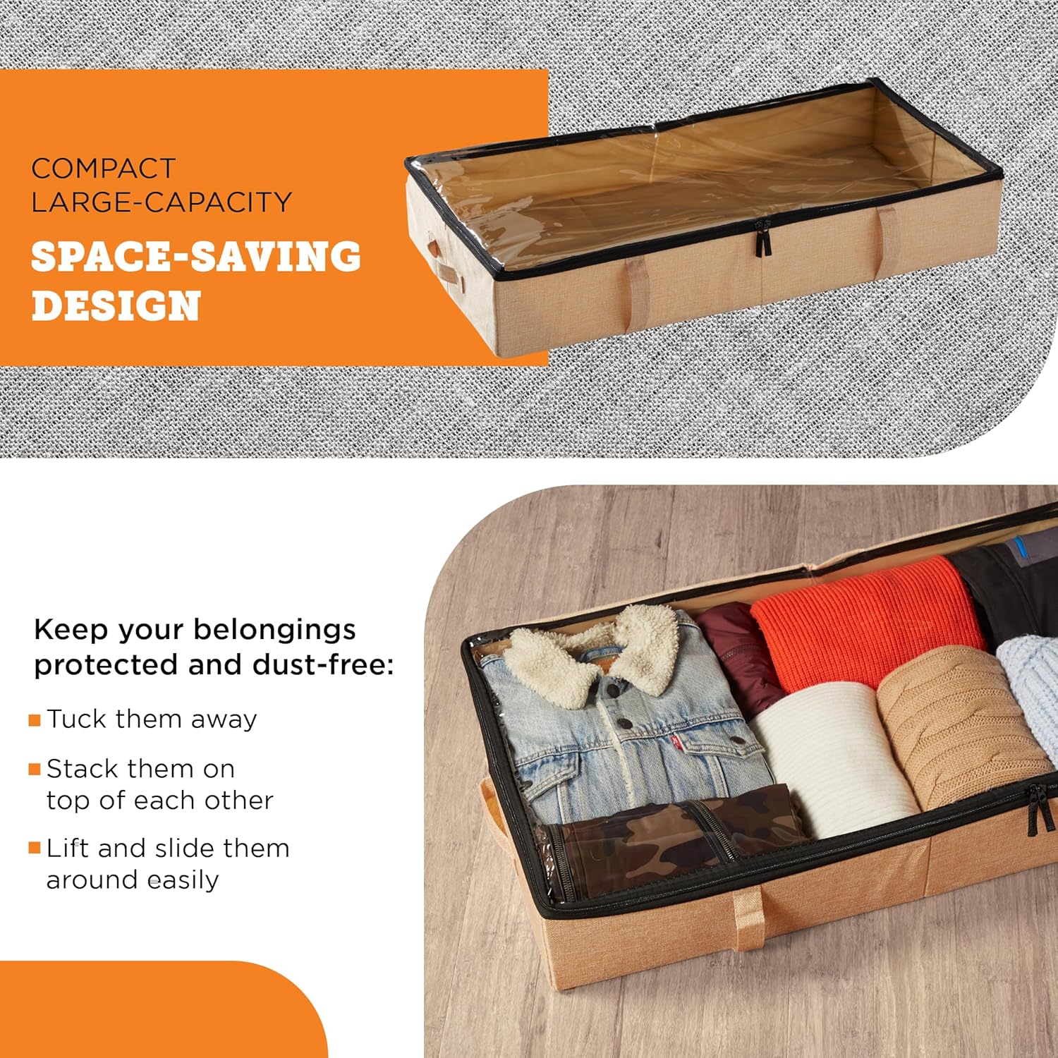 storageLAB Under Bed Storage Containers, Closet Organizers with Sturdy Handles for Clothes, Comforters, and Accessories, Use Under or at the End of the Bed - 2 Pack, Reinforced, Beige