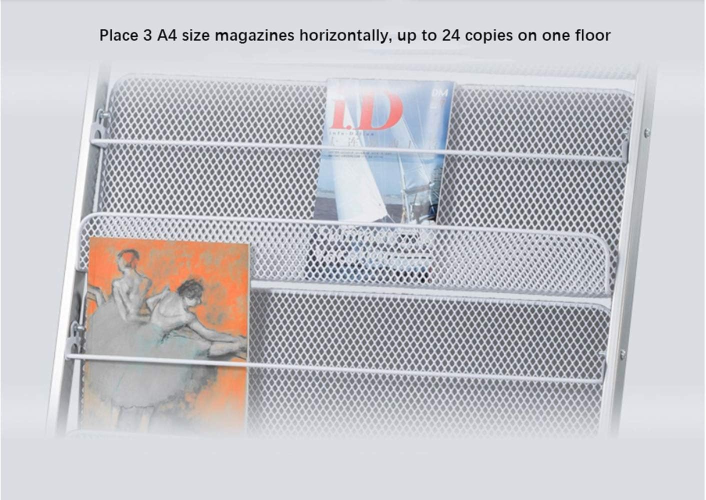 GENMO Floor-Standing Magazine Rack, Carbon Iron Steel, Silver, 4 Large Shelves, Convenient Installation, Suitable for Reception Areas