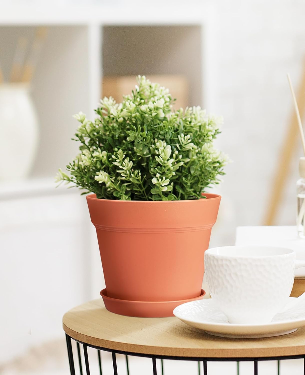 homenote Pots for Plants, 15 Pack 6 Inch Plastic Planters with Multiple Drainage Holes and Tray - Plant Pots for All Home Garden Flowers Succulents (Terra Cotta)