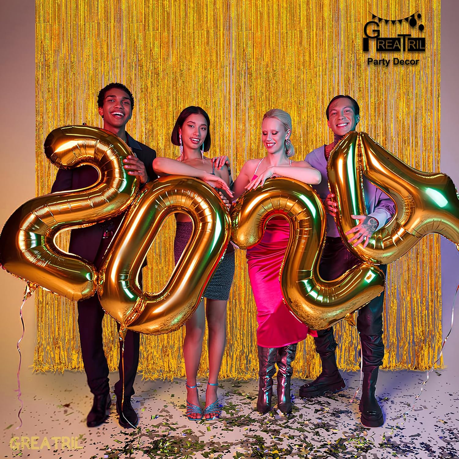 Gold Fringe Curtain Tinsel Backdrop - GREATRIL Foil Fringe Curtain Party Streamers for Prom 2026 NYE New Years Eve Birthdays Christmas Theme Party Decorations Pack of 2