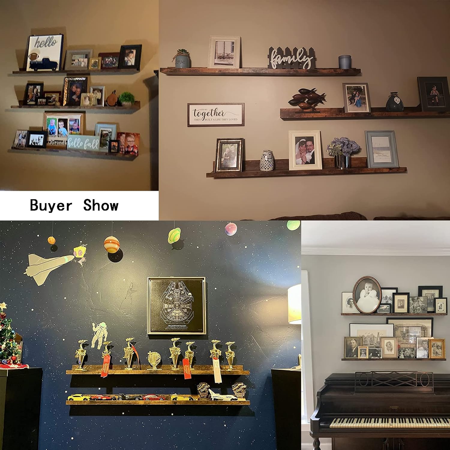 - MULTI-FUNCTIONAL WALL SHELF: As picture shelves, they can display your favorite arts and framed photos; As floating shelf for wall, they can display your collectibles, toys, awards, CD's, videos, small plants and another favorite objects; As wall shelfs organizer, it is a simple storage alternative that frees up floor and counter space.