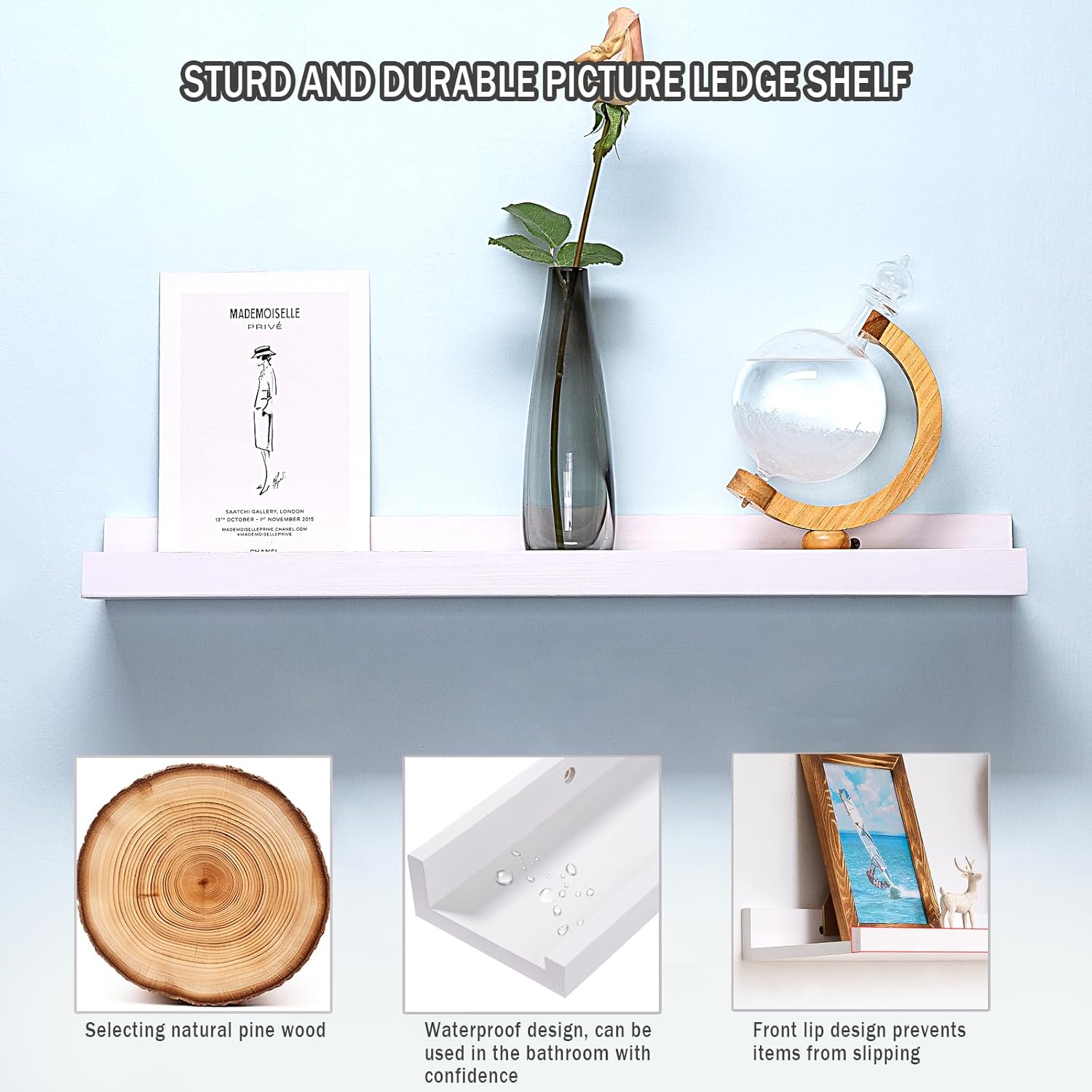 - Modern White Wall Shelves: They are sturdy enough to hold your favorite collections, photos(as picture ledge), books, plants and reorganize small decoration items.Perfect organization and storage narrow shelf for small bedrooms, dorm rooms, or apartments; use the hanging photo frame ledge to display and store artwork, food containers, spice jars or cookware.