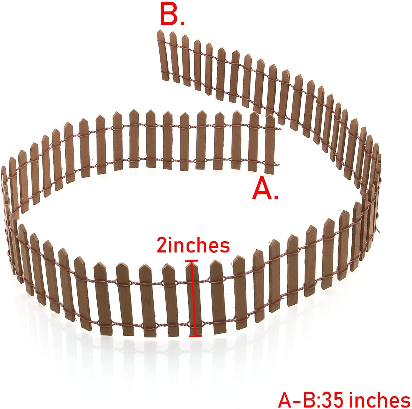 35 Inch Miniature Fairy Garden Fence DIY Wood Decorative Ornament Fence for Dollhouse Succulent Plant Pot Studio Scenes, 2 inch Height Pack of 2