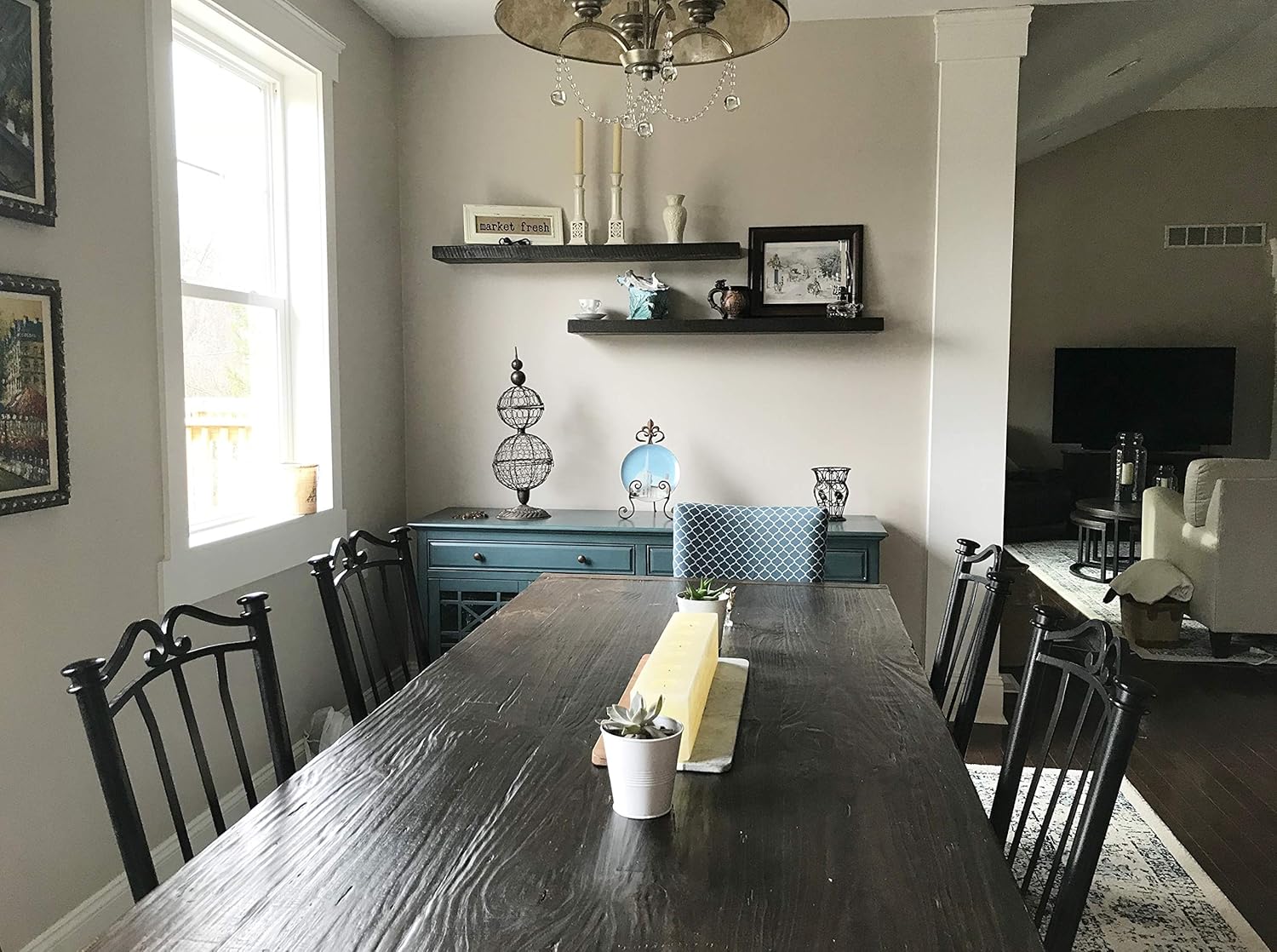 These wall shelves are both functional and stylish, giving my living room a fresh look.