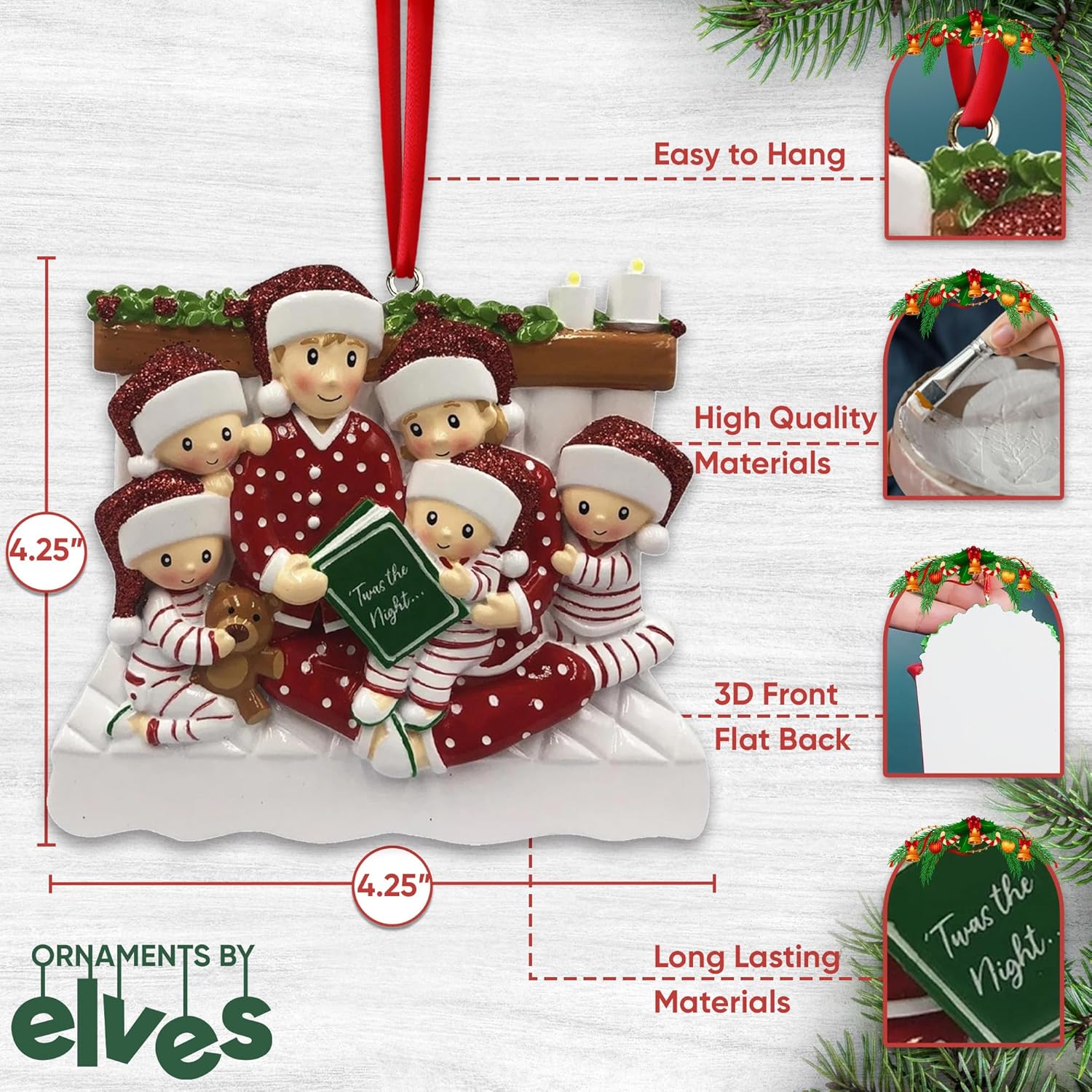 Bedtime Storytelling Family of 6 Christmas Ornament 2025 Personalized Family Christmas Ornaments 2025 | Holiday Reading Personalized Tree Ornaments Customizable Gifts Night and Book of Six Ornament