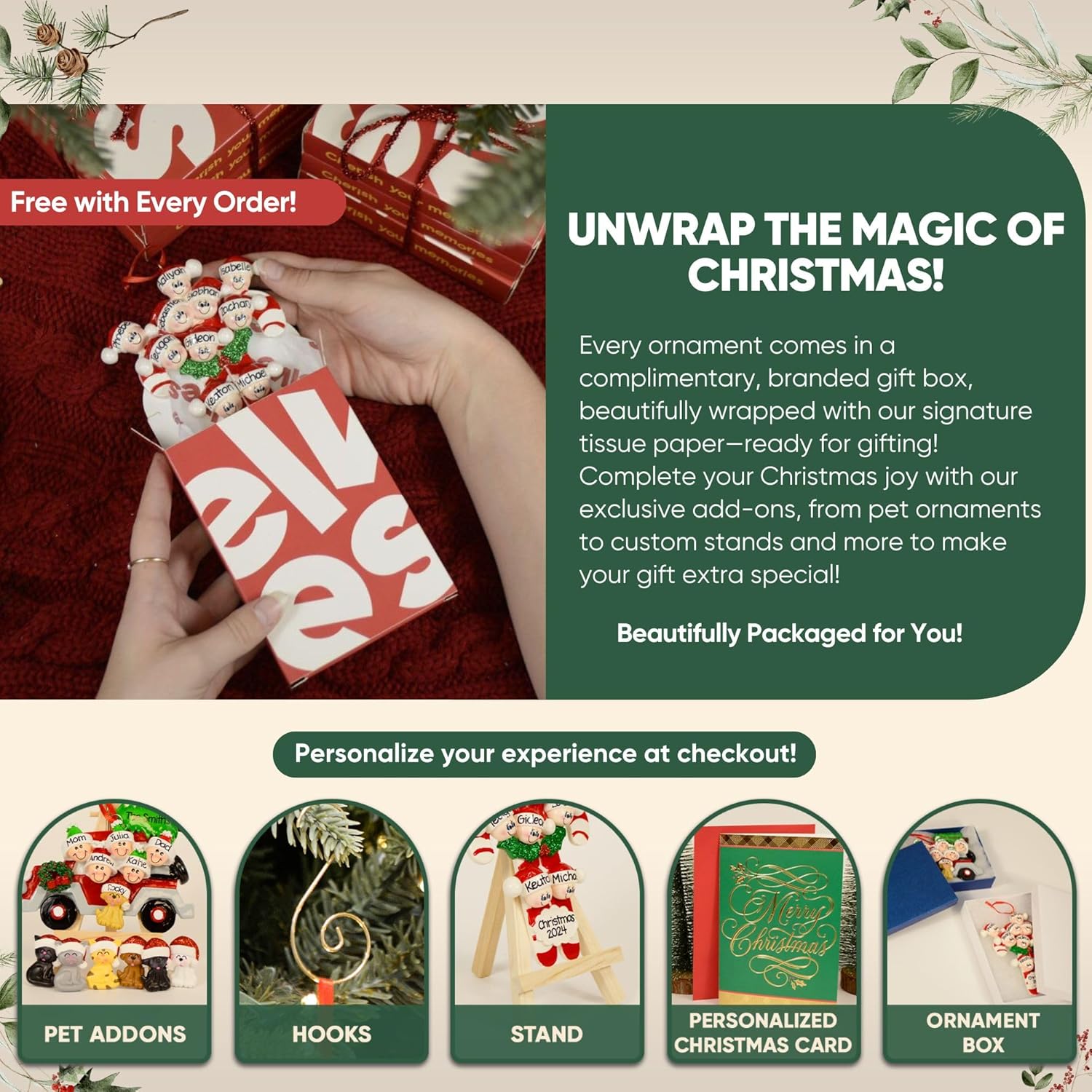 - 👪 Made for Every Home: Our family ornaments personalized for six are perfect for families with four children, blended households, or pet-inclusive homes. Choose from snowmen, stockings, or cozy holiday scenes that reflect the people—and pets—you love most.