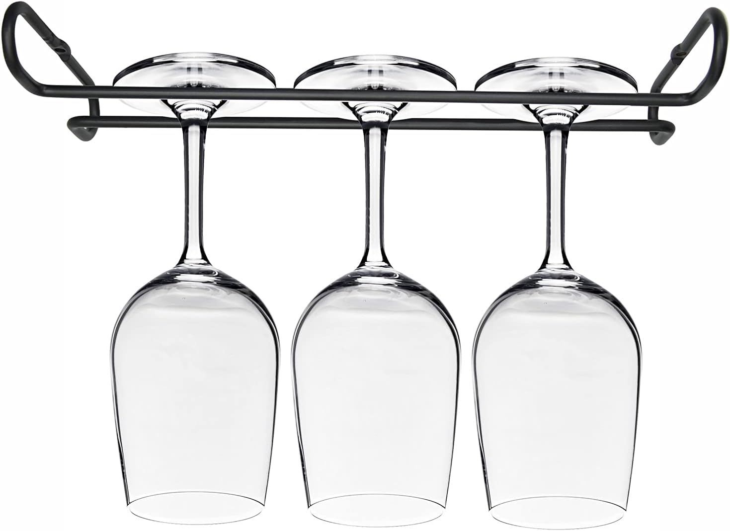 - This wine glass holder's Length is 10.4 inches. Single row holds up to 3 glasses。Suitable for many kinds of stemware cups,