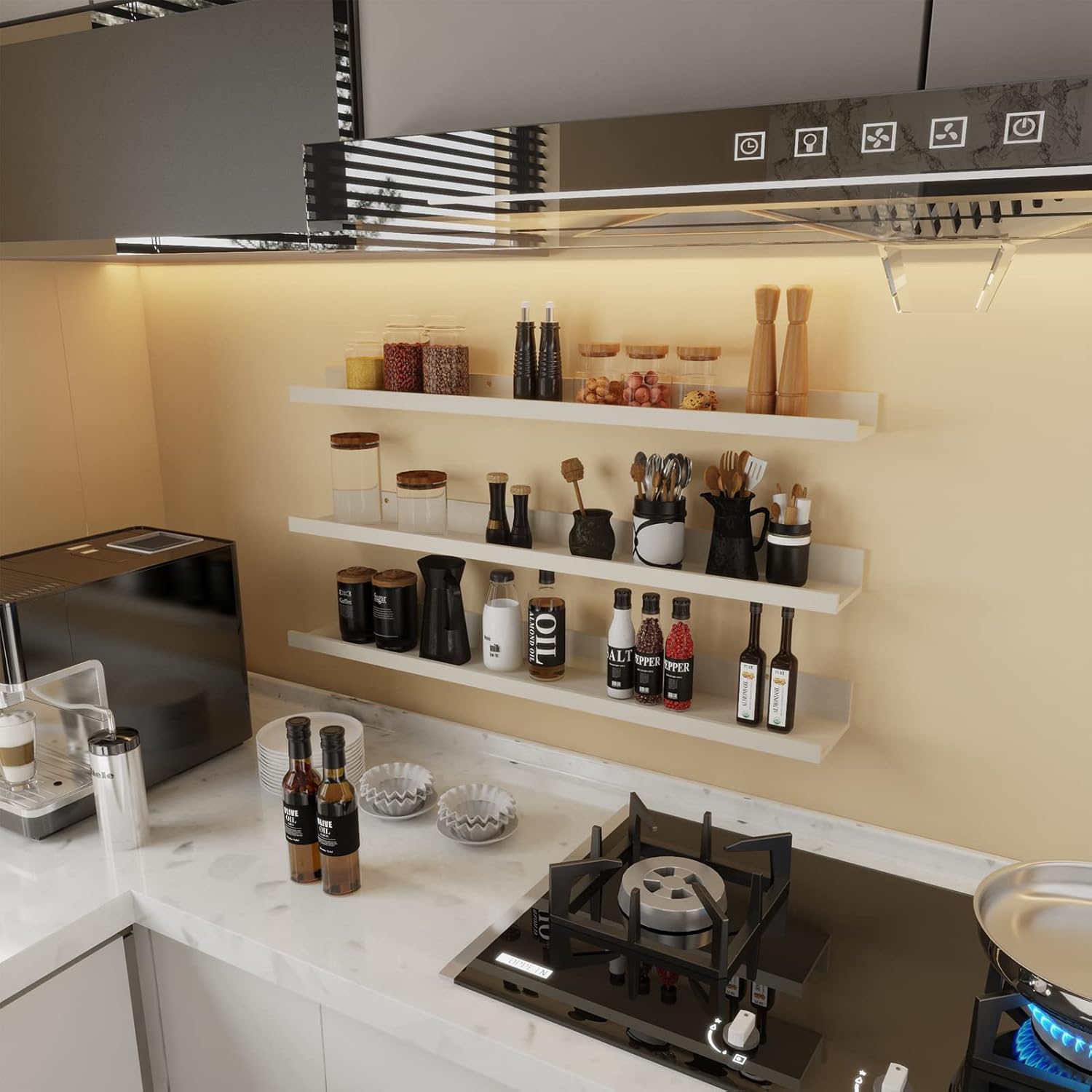 - Versatile Wall Shelves: These wall ledge shelves accommodate various items such as pictures, albums, small plants, spices, jars or keepsakes in bedroom, kitchen, bathroom, living room or office. These floating shelves for wall suit all your needs and keep your wall less cluttered.