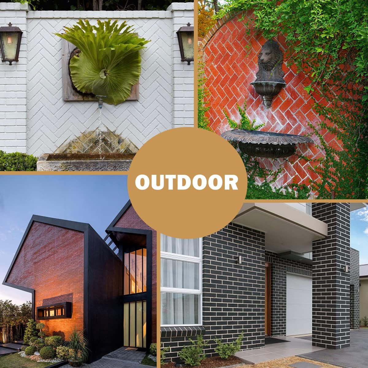- Excellent for exterior wall fence designs and interior applications, fireplace surrounds, shower wall, over drywall, concrete, and wood. Faux Brick fantastic solutions to unsightly, stubborn bothersome walls, or any surface that requires covering, such as living room, bedroom, kitchen area space feature walls and ceiling in home design; company logo wall, conference room, lobby backdrop, reception desk front function space in the workplace, dining establishment, cafes, cinema, and club design.