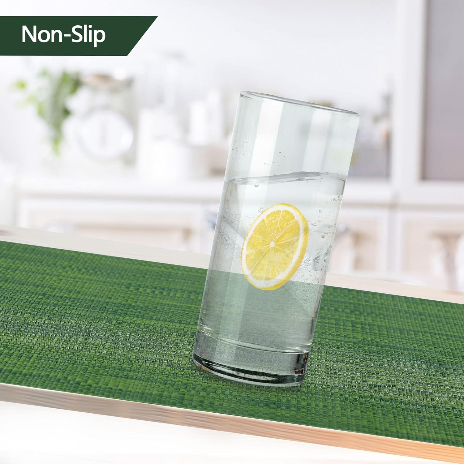 Green Placemats Set of 6 - Wipe Clean Vinyl Placemats - Washable Heat Resistant PVC Table Mats for Dining Table - 17x12 Inch (Green, 6)