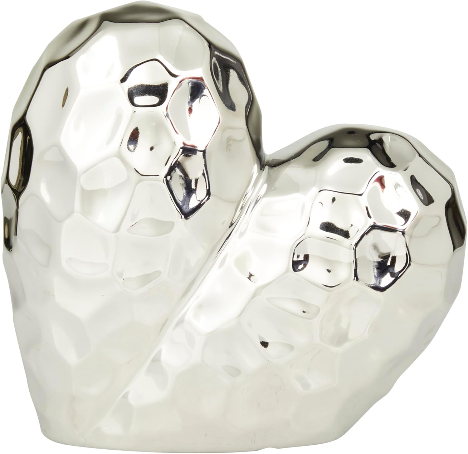 Deco 79 Porcelain Ceramic Heart Decorative Sculpture Dimensional Angled Origami Inspired Home Decor Statue, Accent Figurine 8" x 3" x 8", Silver