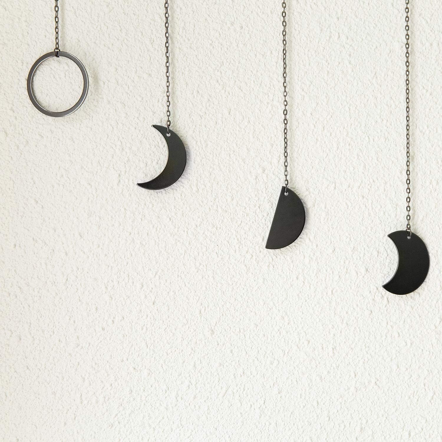 - Materials: Moon is made from silver metal, and Iron chain with black finish. Come with hooks and expansion tubes, easy to install and hang onto the wall