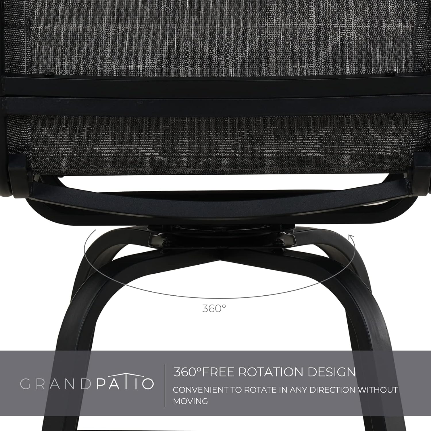 Grand patio Counter Height Outdoor Swivel Bar Stools Set of 2, Patio Bar Chairs with Arms Backs for Porch Balcony, Poolside, Deck (Black&Grey Plaid, 2PC)