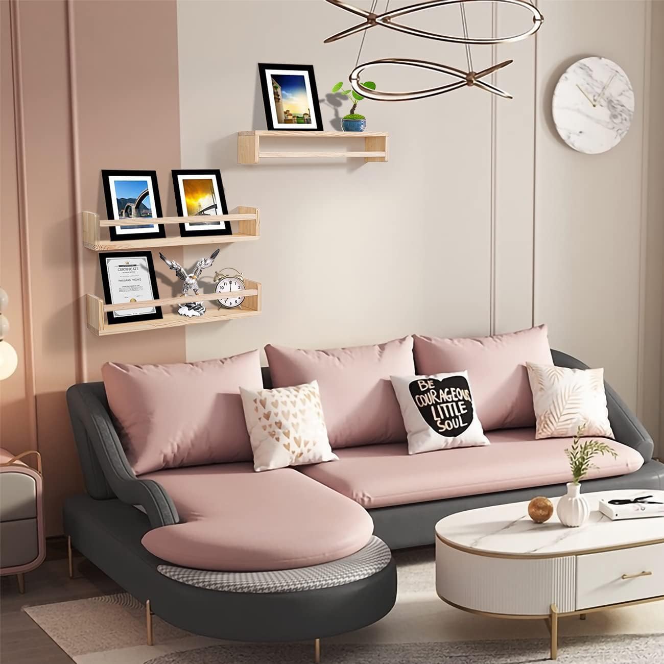 These wall shelves are both functional and stylish, giving my living room a fresh look.