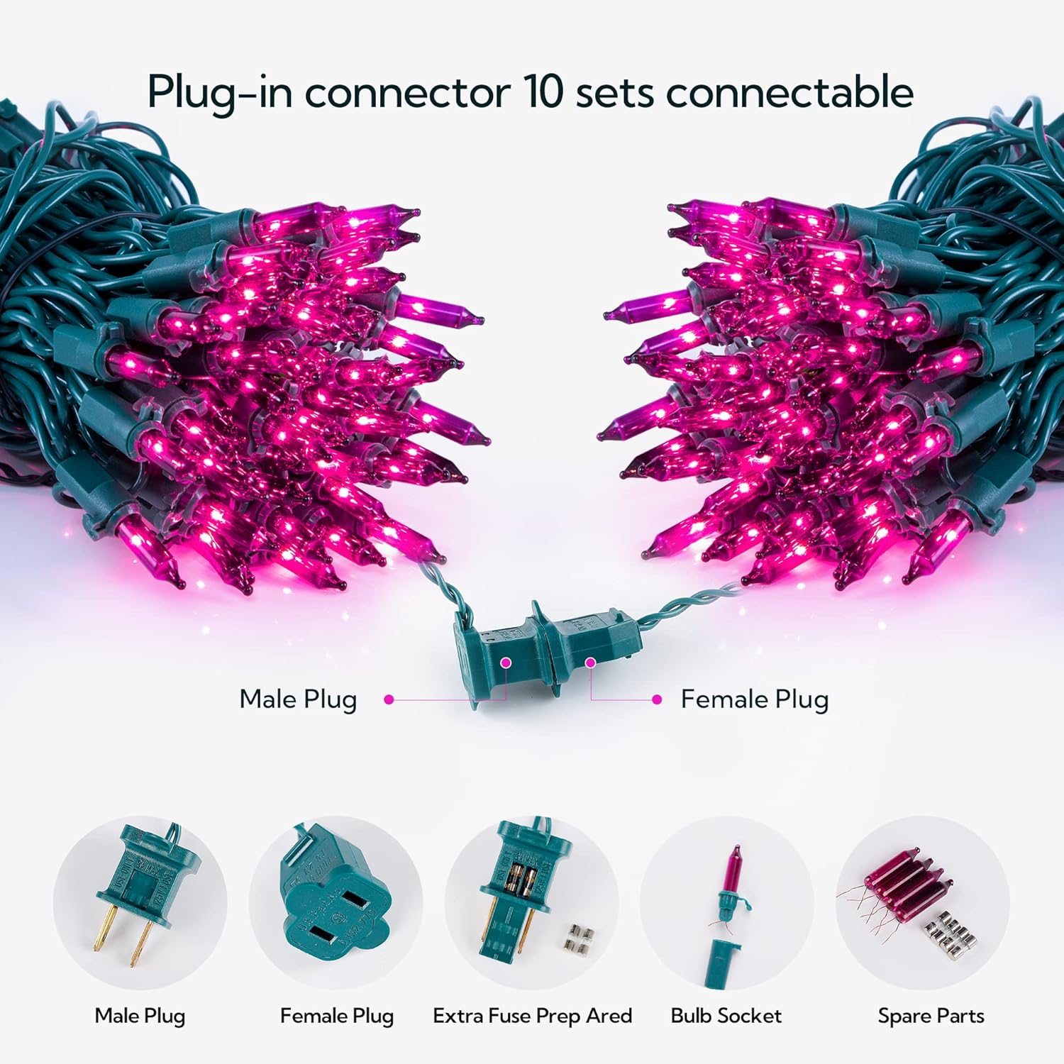 - 👻50 Vibrant Lights with Perfect After Sale :Old-fashion purple incandescent Halloween light set, creates a warm and festive atmosphere, surely lights up your house, let your home become a fantastic sight to behold in your neighborhood! With green wire, ideal for a tree, bedroom, patio decorations!If you have any reason you don't enjoy it, just send us a message and we will refund 100% or replace your purchase.