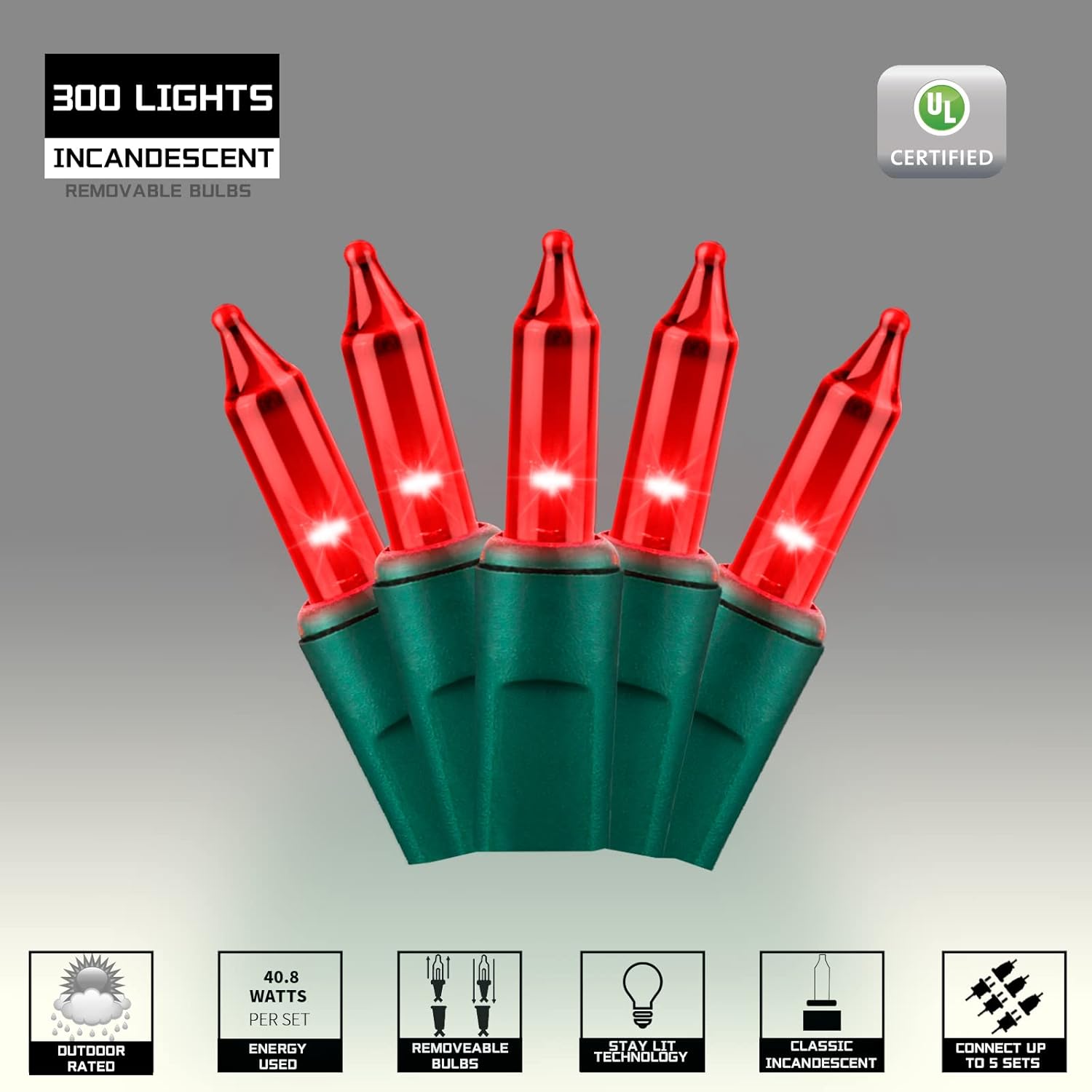 300LIGHTS(2*150L) RED Extra-Bright with End Connectors Christmas Decorative Lights 19.44m UL Certified Mini String Light Set Waterproof for Home Garden Holiday Tree Party Patio Decor Wedding