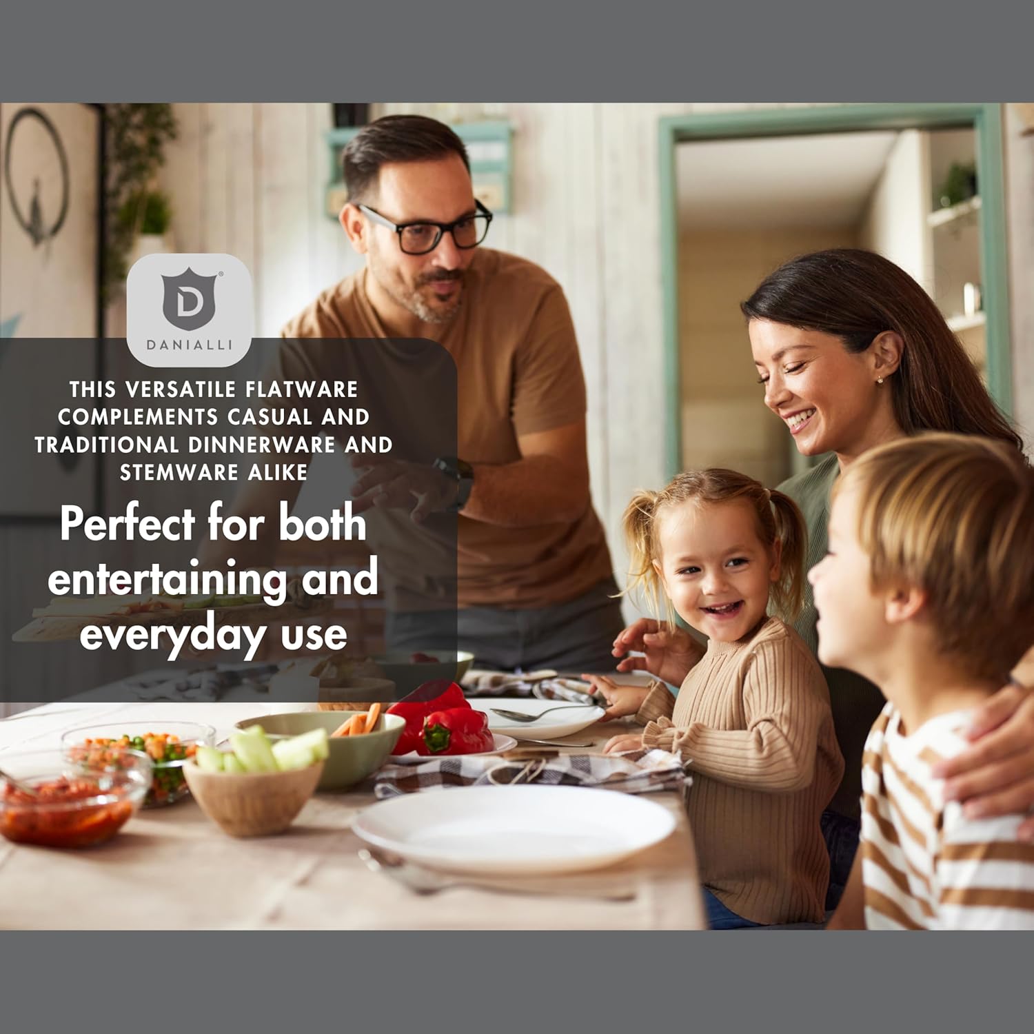- Sized for Every Dish: Includes tea spoons (7 3/8”), tablespoons (8”), knives (9 1/8”), dinner forks (8”), and salad forks (7 2/8”) — thoughtfully designed to suit any meal and elevate your table.