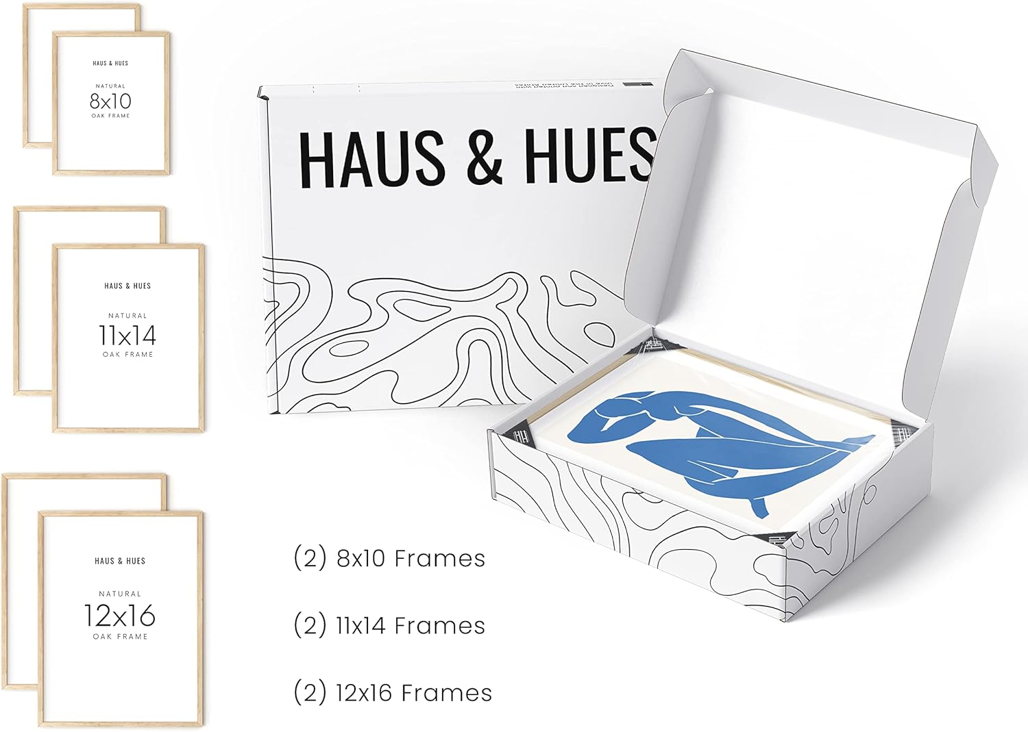 - VARIETY PICTURE FRAME PACK: Whether you place the frames along your staircase, in your office, living room, or bedroom, Haus and Hues gallery frames are the easiest way to fill up your walls with your unique art collection or personal photos. The set includes two 8x10 frames, two 11x14 frames, and two beige 12x16 frames.