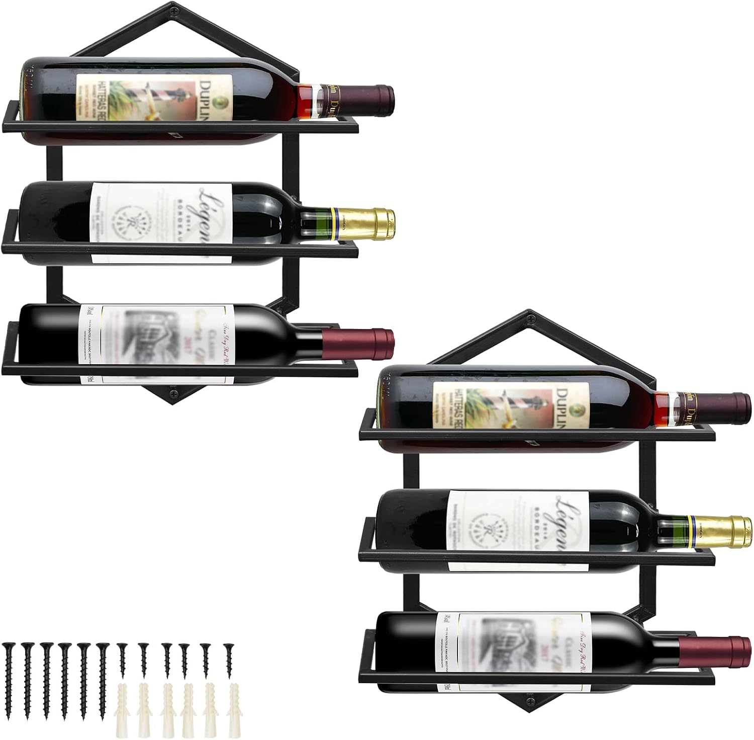 - 【Wine Bottle Display Rack】Our wall mounted wine bottle holder presents your precious wine bottles, goblets in a stylish way, shows a unique artistic atmosphere. Wine rack holds 2 bottles of wine, or champagne.