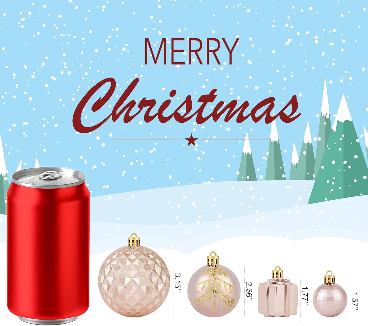 Rose Gold Christmas Ball Ornaments - 116Pc Shatterproof Hanging Decoration Set with Gift Box, Assorted Baubles for Xmas Tree/Home/Wedding/Party/Holiday