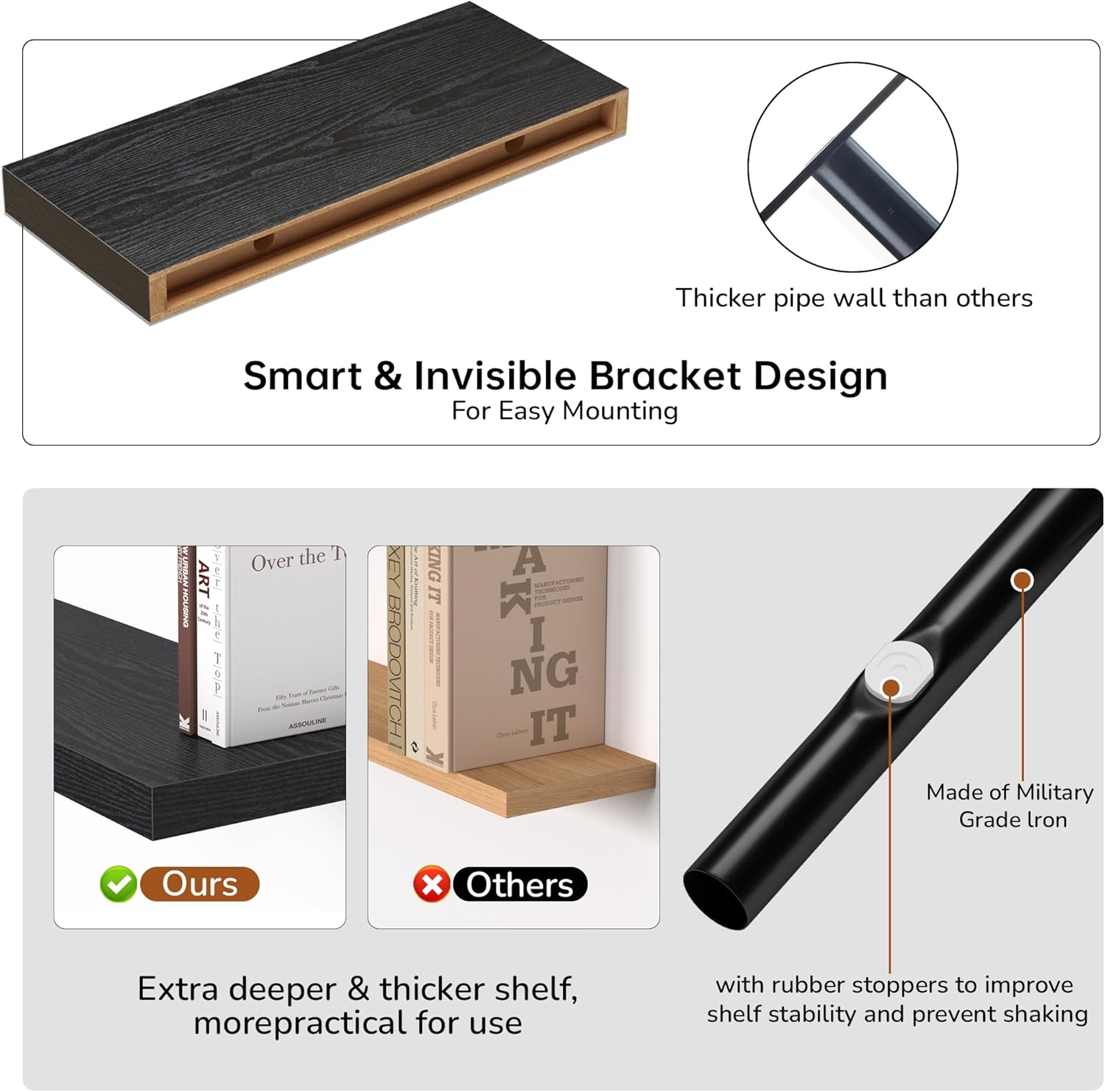 - Special Feature : Display Shelves, Invisible & Sturdy Metal Brackets, Large Storage Shelves, Wall Mounted Shelves, Wood Shelves Display Shelves, Invisible & Sturdy Metal Brackets, Large Storage Shelves, Wall Mounted Shelves, Wood Shelves