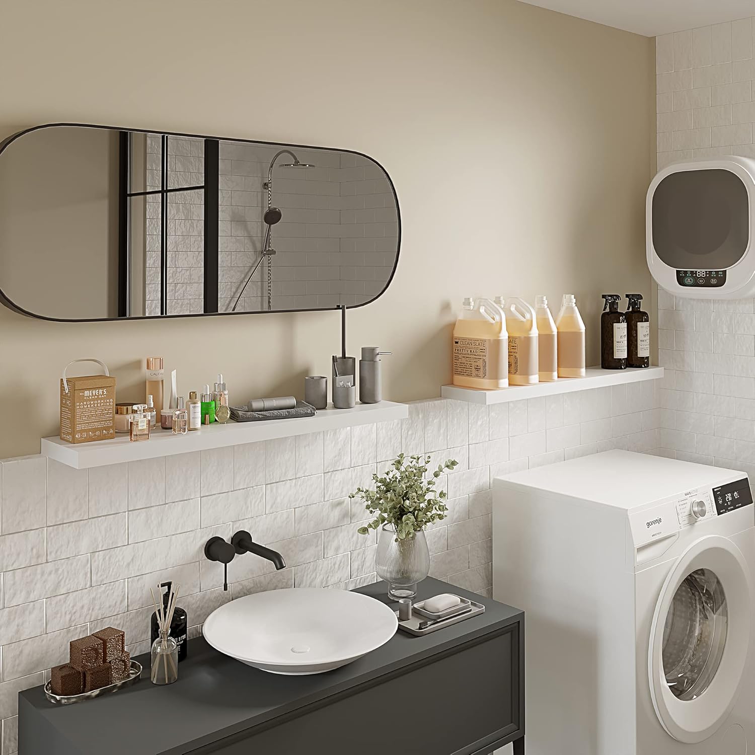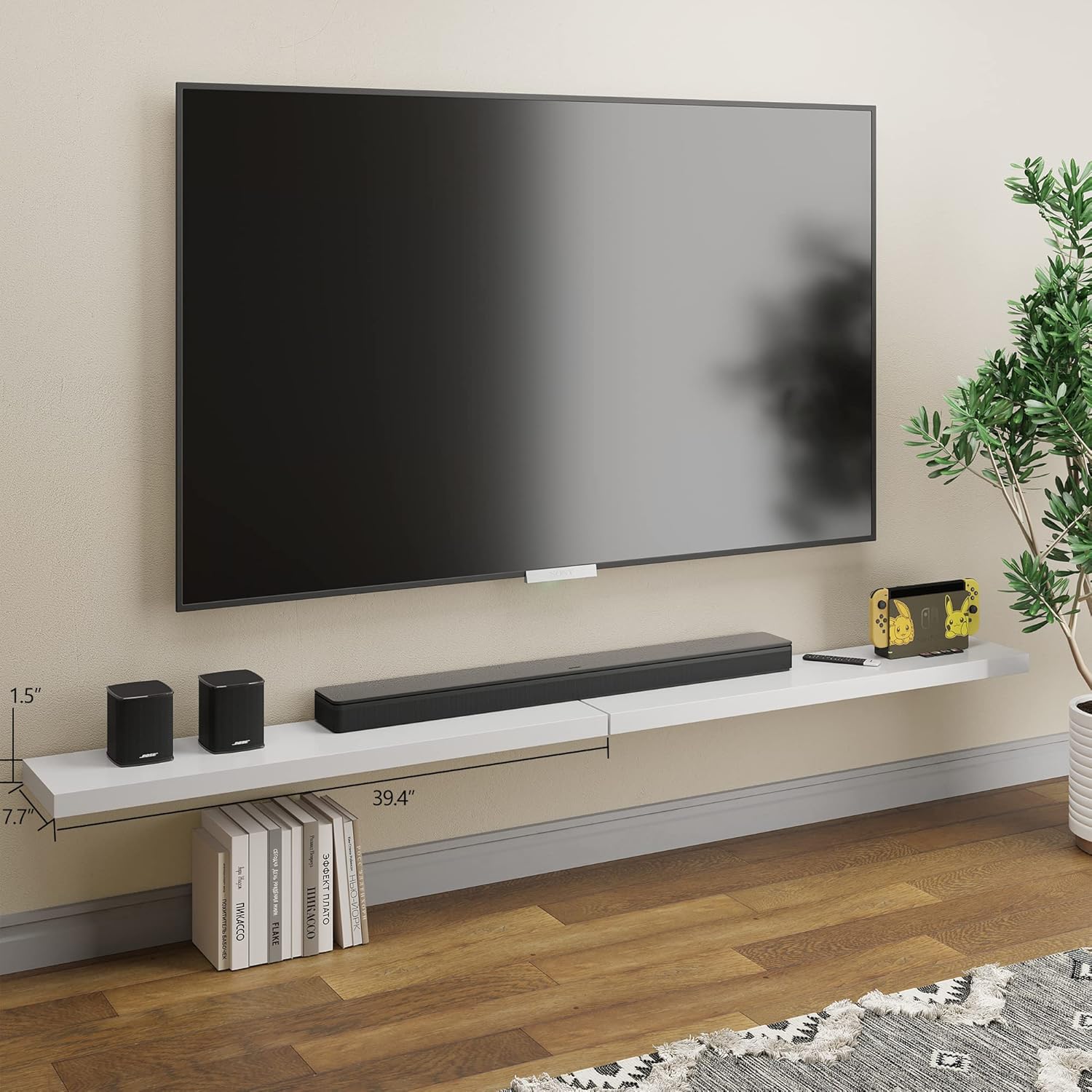 - 40 INCHES FREE UP SPACE: The Bameos White Wall Shelf will maximize space without taking up any square feet - each board measures 39.4” L x 7.7” W x 1.5” H; Reduce clutter and highlight decor in a compact space - giving the illusion of more space in your studio apartment, dorm room or small living area and so on