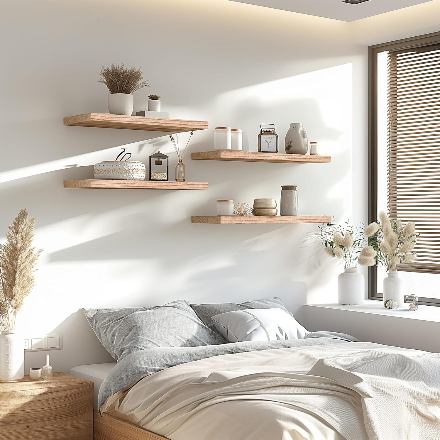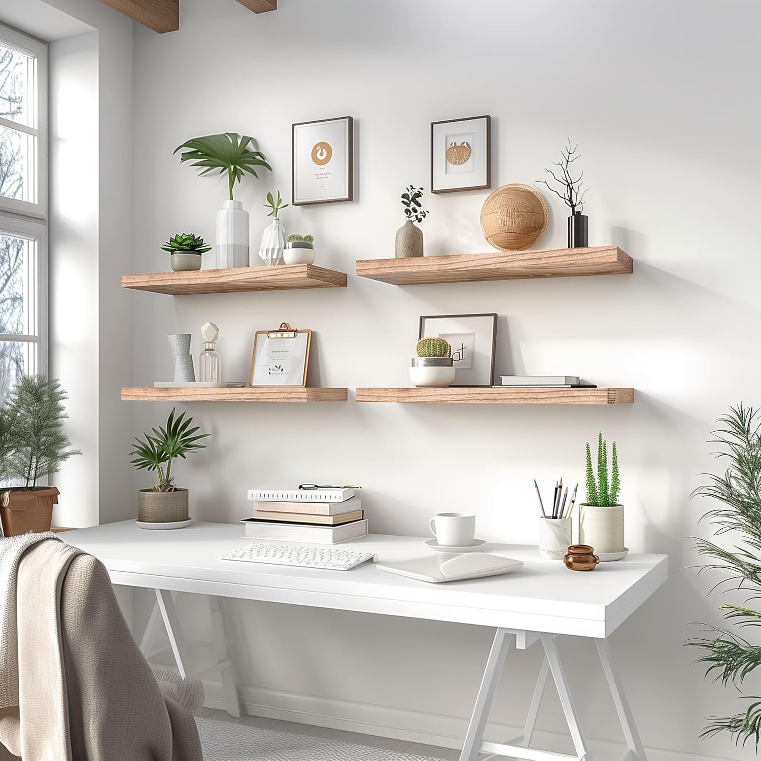 - Home decor and storage shelves - This wall shelves are the perfect piece for any rustic, modern, or natural home decor. They allow to better organize spaces, helping you conveniently store everything from alarm clocks, books, pictures to potted plants.