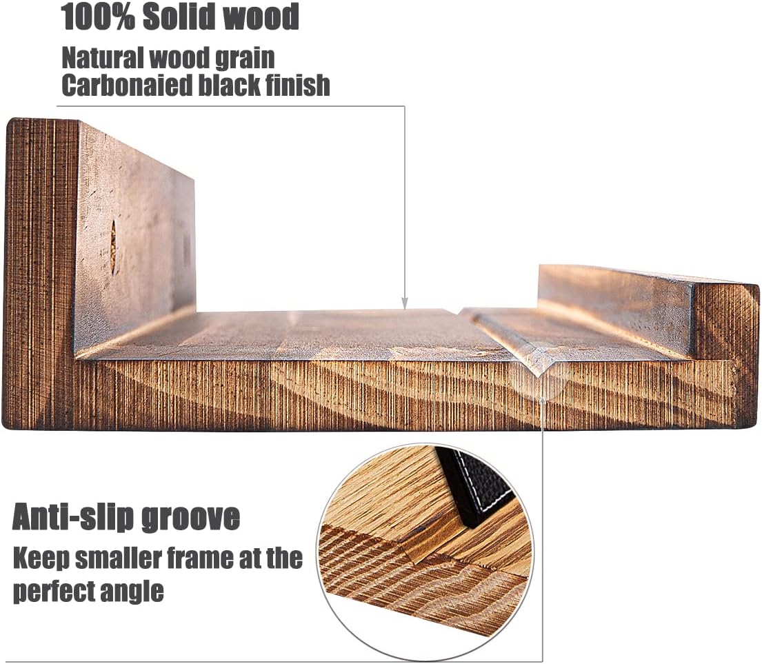 AZSKY Picture Ledge Shelf Wall Ledge Floating Shelves for Photo Frames Kids Book Shelves Wall Mounted Burnt Wall Display Shelf Wooden Frame Ledge 48 Inches Set of 3 Bathroom Organizer Shelves