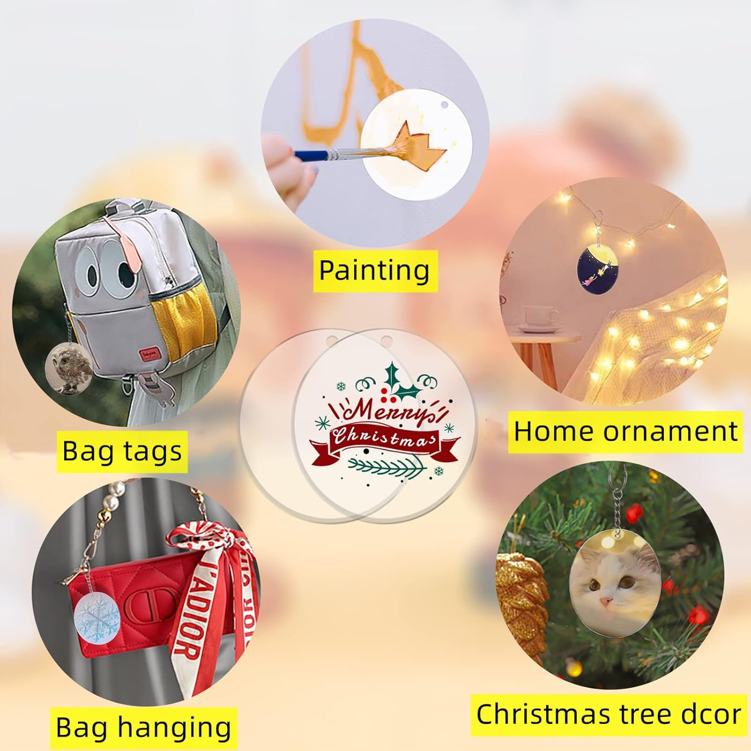 - Widely Used Blank Round:You can paint and engrave words or stick your favorite stickers on the blanks of the acrylic discs,DIY your own acrylic key chain ornaments gift tags pendants souvenirs and many other craft projects