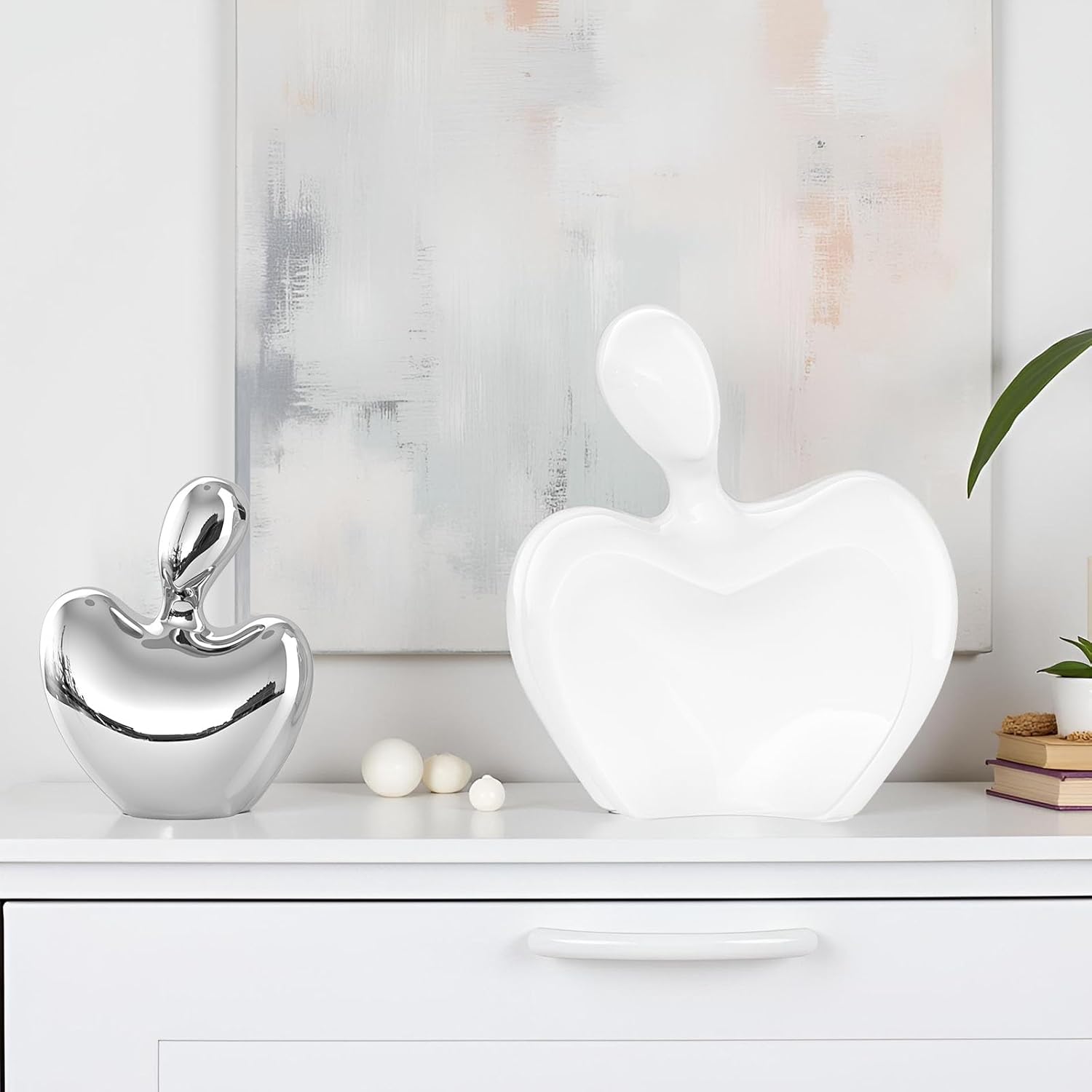 XMGZQ White and Silver Ceramic Couple Figurines Home Decor,Wedding Engagement Romantic Gift for Husband Wife,Large Male and Female Love Statue Valentine's Day Birthday,Abstract Hugging Couple